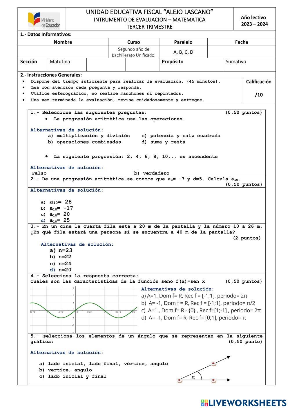 Created bylucia Esther Matemáticas Sucesiones y progresiones Age 14-17 level: bachillerato Spanish คำแนะนำของผู้เขียน My Google Classroom Courses × 0 classes selected (0 students total) Quick Access Select all classes (0 classes) All Classes Loading courses... ยกเลิก Share Share to selected Course __COURSE_NAME__ __STUDENT_NAME__ (__STUDENT_EMAIL__) progresiones ดาวน์โหลด Worksheet Validation Check my answers Emails my answers to my teacher ชื่อเต็ม Group/level School subject Teacher's email or key code Close ส่งข้อมูล Validating worksheet... (12) Your answers have been sent to your teacher. Good luck! OK We encountered an error submitting your answers. Please try again. OK โฆษณา | ใช้งานแบบไม่มีโฆษณา Created bylucia Esther Matemáticas Sucesiones y progresiones Age 14-17 level: bachillerato Spanish คำแนะนำของผู้เขียน