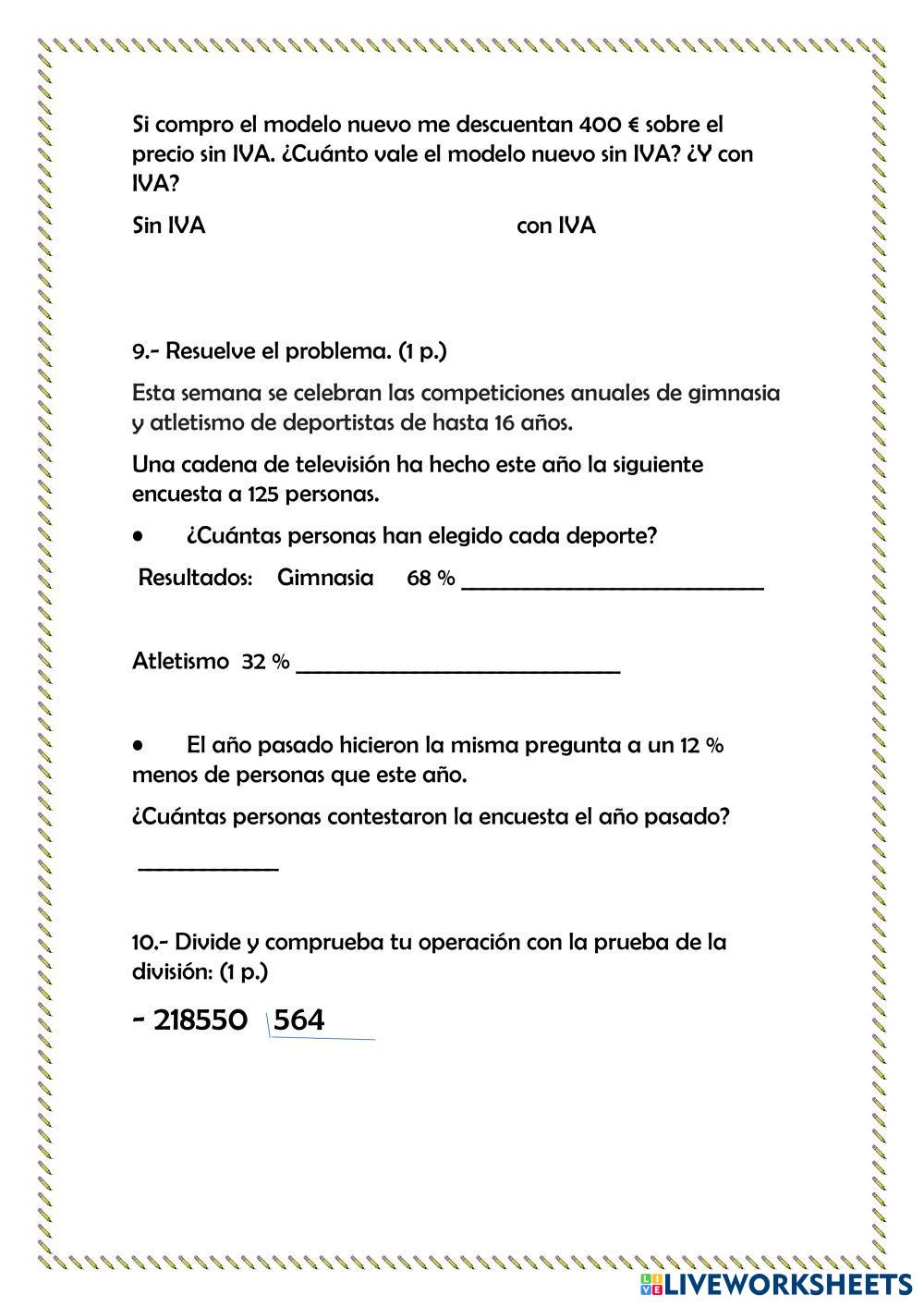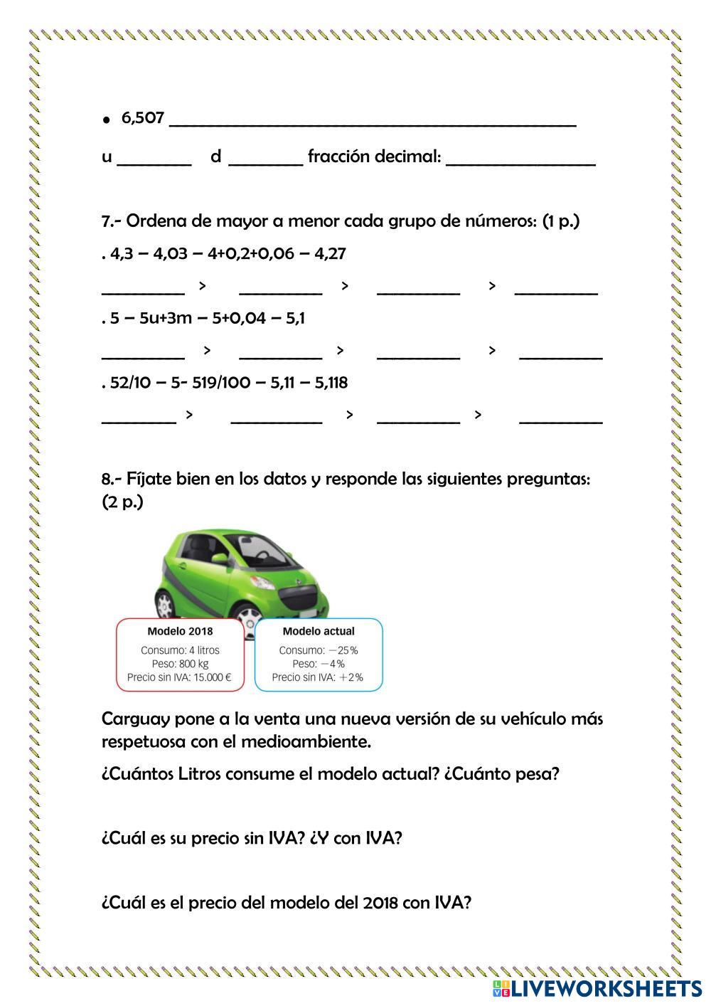 Created by SoniaTP Matemáticas Números decimales Age 10-15 level: 5º Spanish คำแนะนำของผู้เขียน My Google Classroom Courses × 0 classes selected (0 students total) Quick Access Select all classes (0 classes) All Classes Loading courses... ยกเลิก Share Share to selected Course __COURSE_NAME__ __STUDENT_NAME__ (__STUDENT_EMAIL__) PRUEBA UNIDAD 7 ดาวน์โหลด Worksheet Validation Check my answers Emails my answers to my teacher ชื่อเต็ม Group/level School subject Teacher's email or key code Close ส่งข้อมูล Validating worksheet... (12) Your answers have been sent to your teacher. Good luck! OK We encountered an error submitting your answers. Please try again. OK โฆษณา | ใช้งานแบบไม่มีโฆษณา Created by SoniaTP Matemáticas Números decimales Age 10-15 level: 5º Spanish คำแนะนำของผู้เขียน