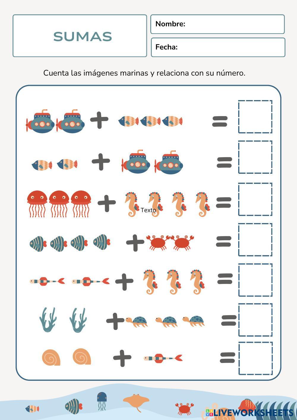 Created by VANESSA PATINO SANCHEZ คณิตศาสตร์ ประถมศึกษา ป.1 (ประถมศึกษาปีที่ 1) การบวกและการลบ Spanish คำแนะนำของผู้เขียน Cuenta el número total de animales marinos. My Google Classroom Courses × 0 classes selected (0 students total) Quick Access Select all classes (0 classes) All Classes Loading courses... ยกเลิก Share Share to selected Course __COURSE_NAME__ __STUDENT_NAME__ (__STUDENT_EMAIL__) Sumas de animales marinos ดาวน์โหลด Worksheet Validation Check my answers Emails my answers to my teacher ชื่อเต็ม Group/level School subject Teacher's email or key code Close ส่งข้อมูล Validating worksheet... (12) Your answers have been sent to your teacher. Good luck! OK We encountered an error submitting your answers. Please try again. OK โฆษณา | ใช้งานแบบไม่มีโฆษณา Created by VANESSA PATINO SANCHEZ คณิตศาสตร์ ประถมศึกษา ป.1 (ประถมศึกษาปีที่ 1) การบวกและการลบ Spanish คำแนะนำของผู้เขียน Cuenta el número total de animales marinos. สำรวจแผ่นงาน 2-digit addition with regrouping Math 1st grade 2-digit addition with regrouping Addition and Subtraction - Math 2-digit addition with regrouping Week 1 Assessment Math 1st grade Week 1 Assessment Addition and Subtraction - Math Answer the following: Matematica Math 1st grade Matematica Addition and Subtraction - Math realizați sarcinile Matematica Math 1st grade Matematica Addition and Subtraction - Math realizați toate sarcinile