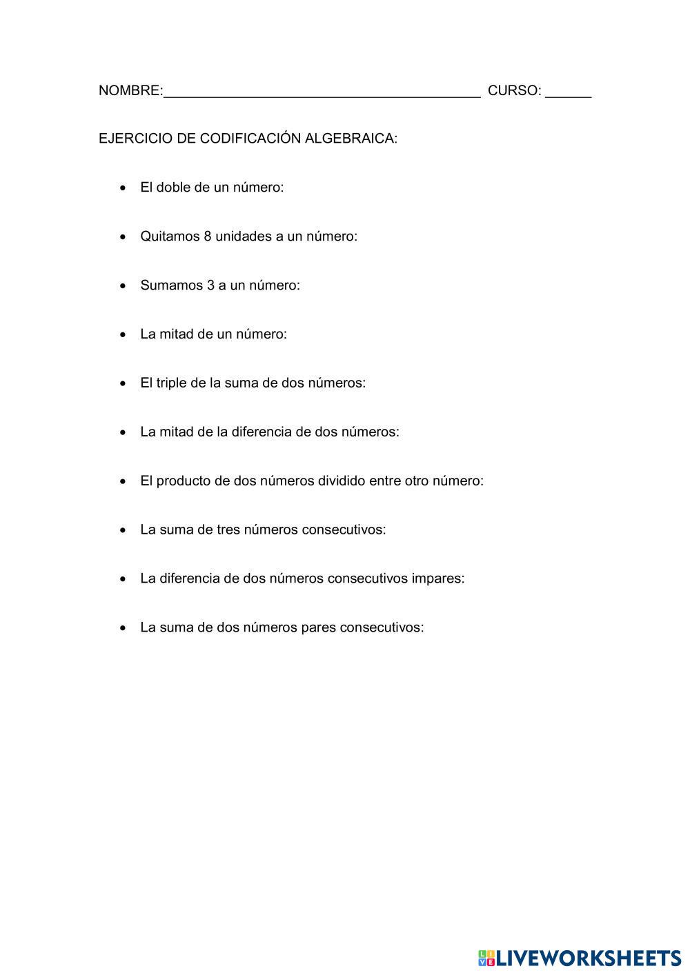 CODIFICA A LENGUAJE ALGEBRAICO