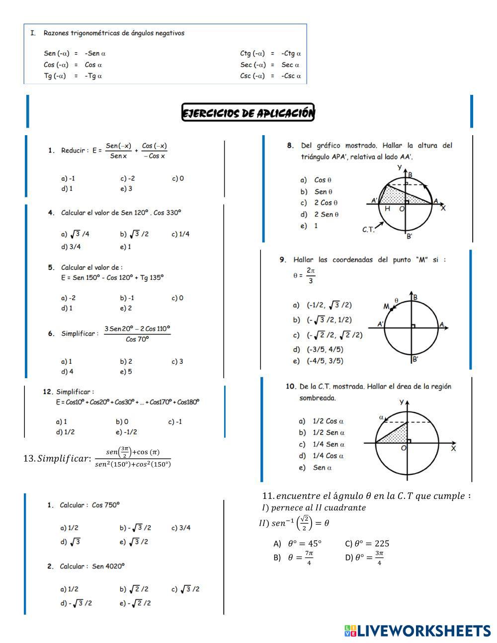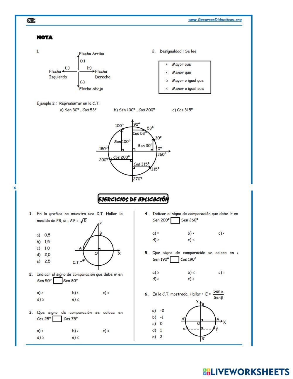 Lee y con la ayuda de la circuferencia trigonométrica resuelve en la ficha los ejercicios.