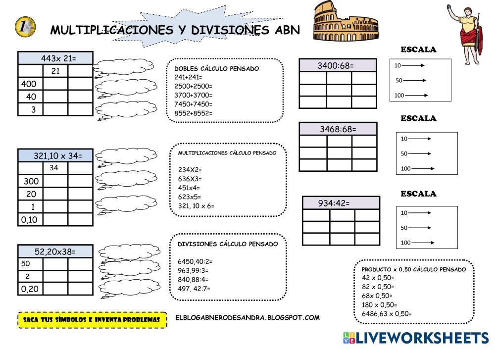 Comparto esta ficha para practical multiplicaciones, divisiones y estrategias de cálculo mental pensado.