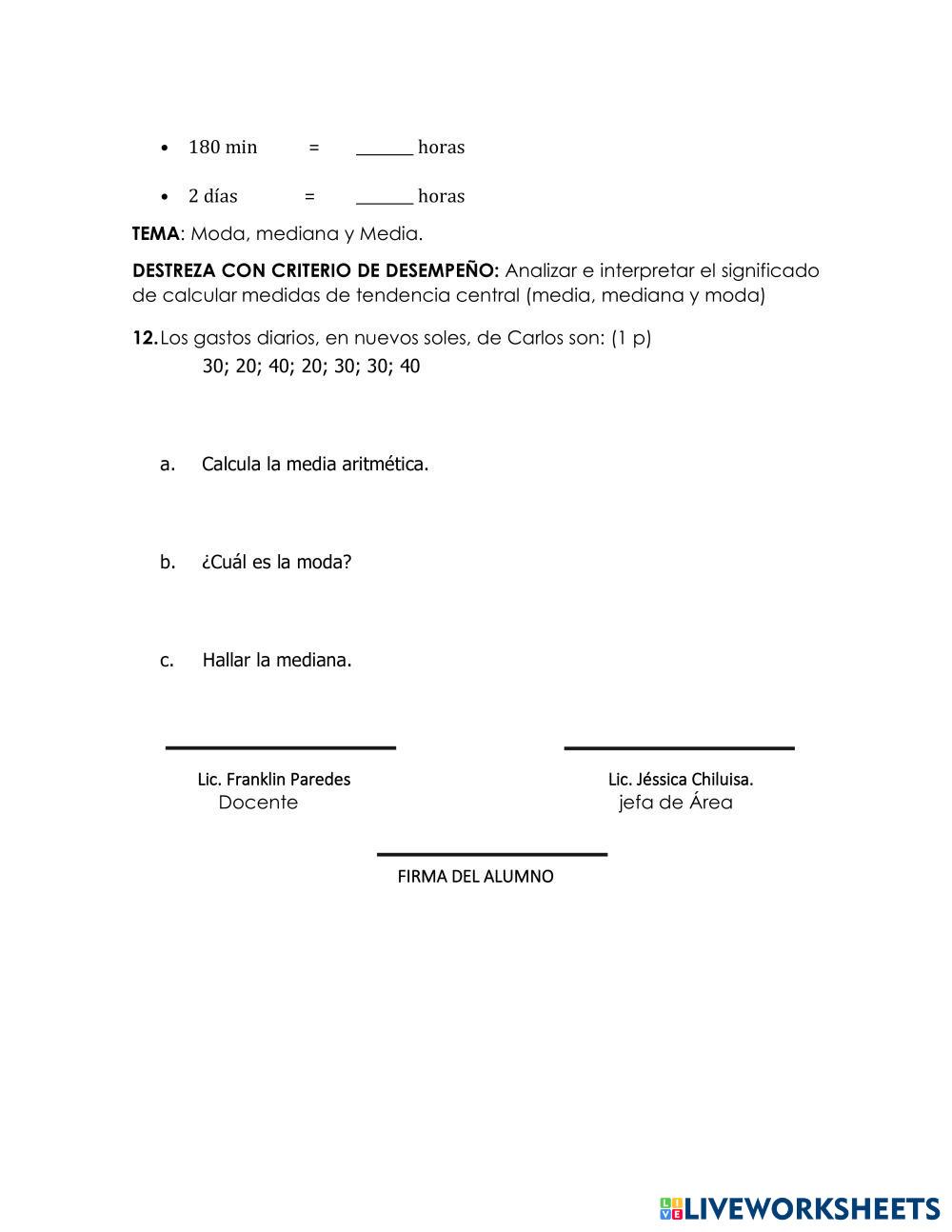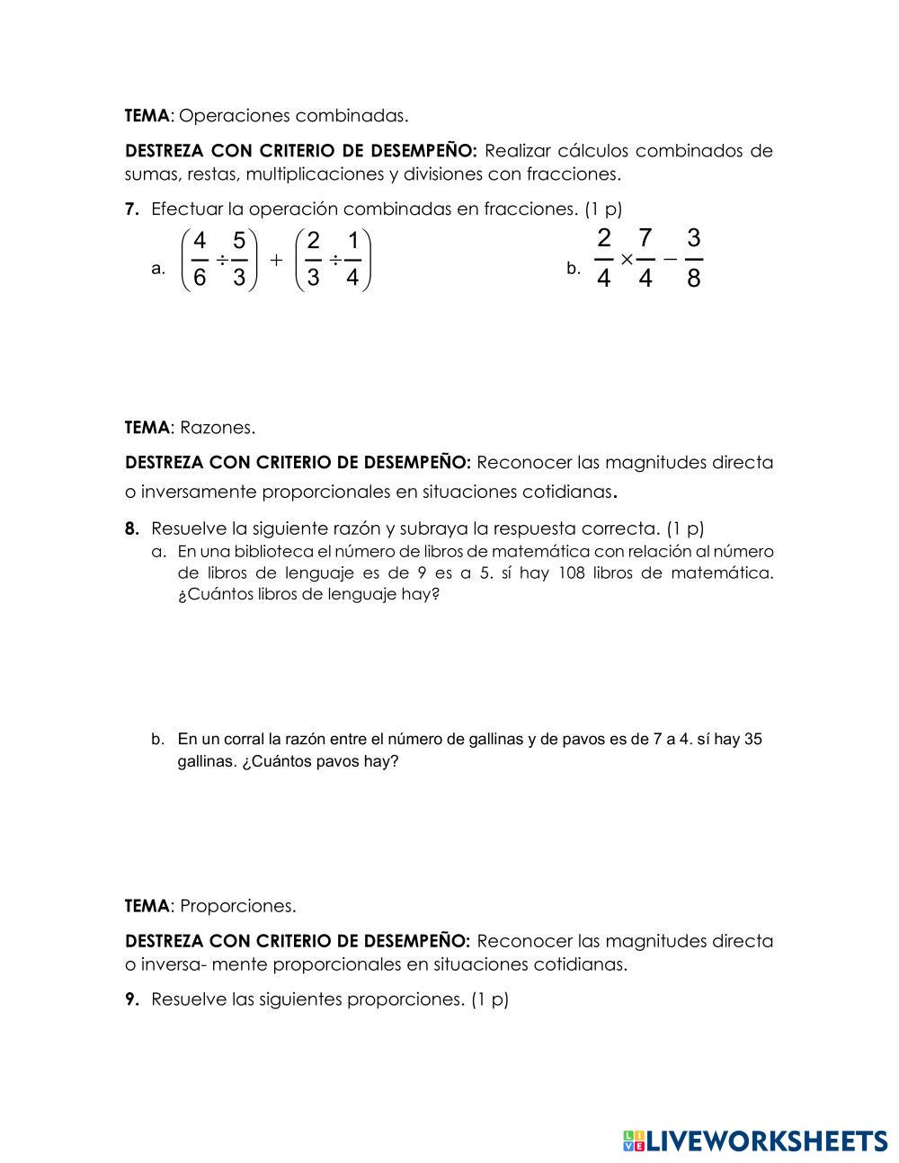 Created by frankleo Prueba Evaluativa PRUEBA DE MATEMÁTICAS Age 9-15 level: 6to año Educación Básica Spanish คำแนะนำของผู้เขียน My Google Classroom Courses × 0 classes selected (0 students total) Quick Access Select all classes (0 classes) All Classes Loading courses... ยกเลิก Share Share to selected Course __COURSE_NAME__ __STUDENT_NAME__ (__STUDENT_EMAIL__) PRUEBA DE MATEMÁTICAS ดาวน์โหลด Worksheet Validation Check my answers Emails my answers to my teacher ชื่อเต็ม Group/level School subject Teacher's email or key code Close ส่งข้อมูล Validating worksheet... (12) Your answers have been sent to your teacher. Good luck! OK We encountered an error submitting your answers. Please try again. OK โฆษณา | ใช้งานแบบไม่มีโฆษณา Created by frankleo Prueba Evaluativa PRUEBA DE MATEMÁTICAS Age 9-15 level: 6to año Educación Básica Spanish คำแนะนำของผู้เขียน