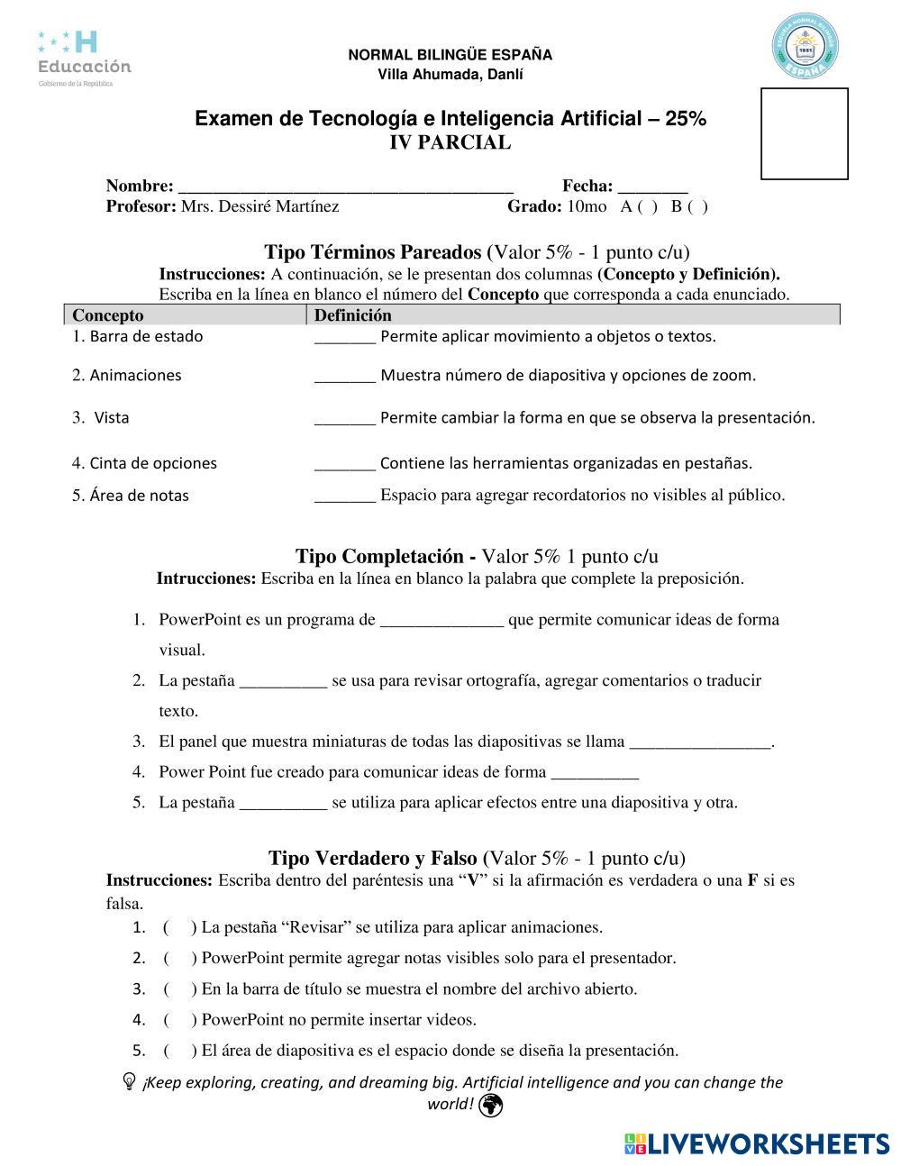🖥️ Instrucciones del examen de Informática
