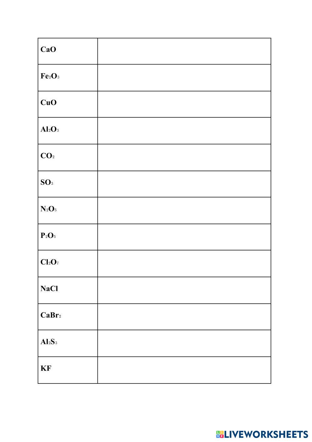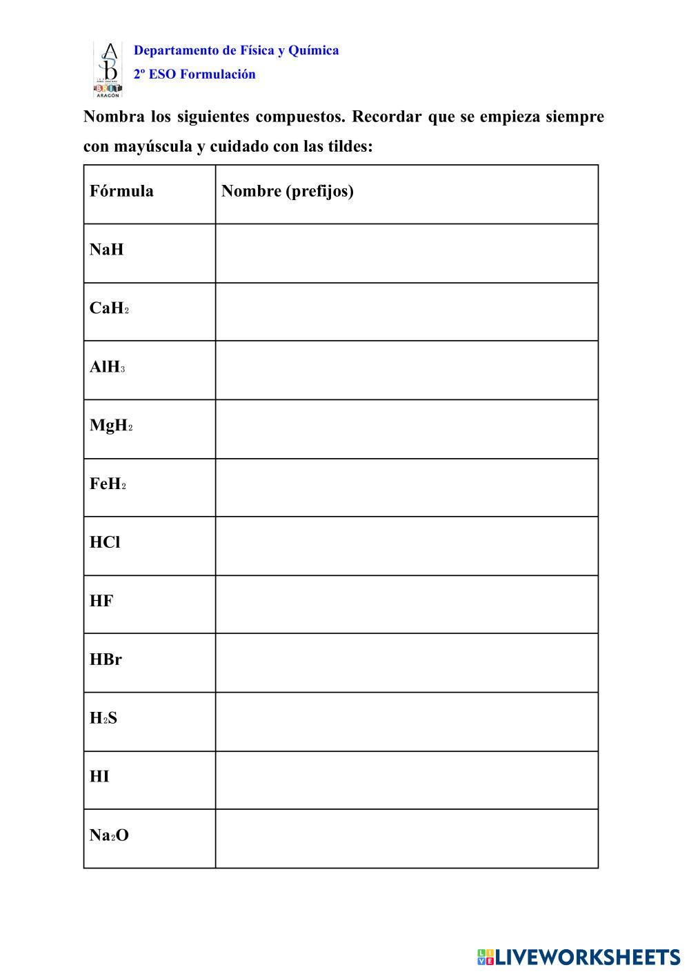 Nombra los siguientes compuestos. Recordar que se empieza siempre con mayúscula y cuidado con las tildes: