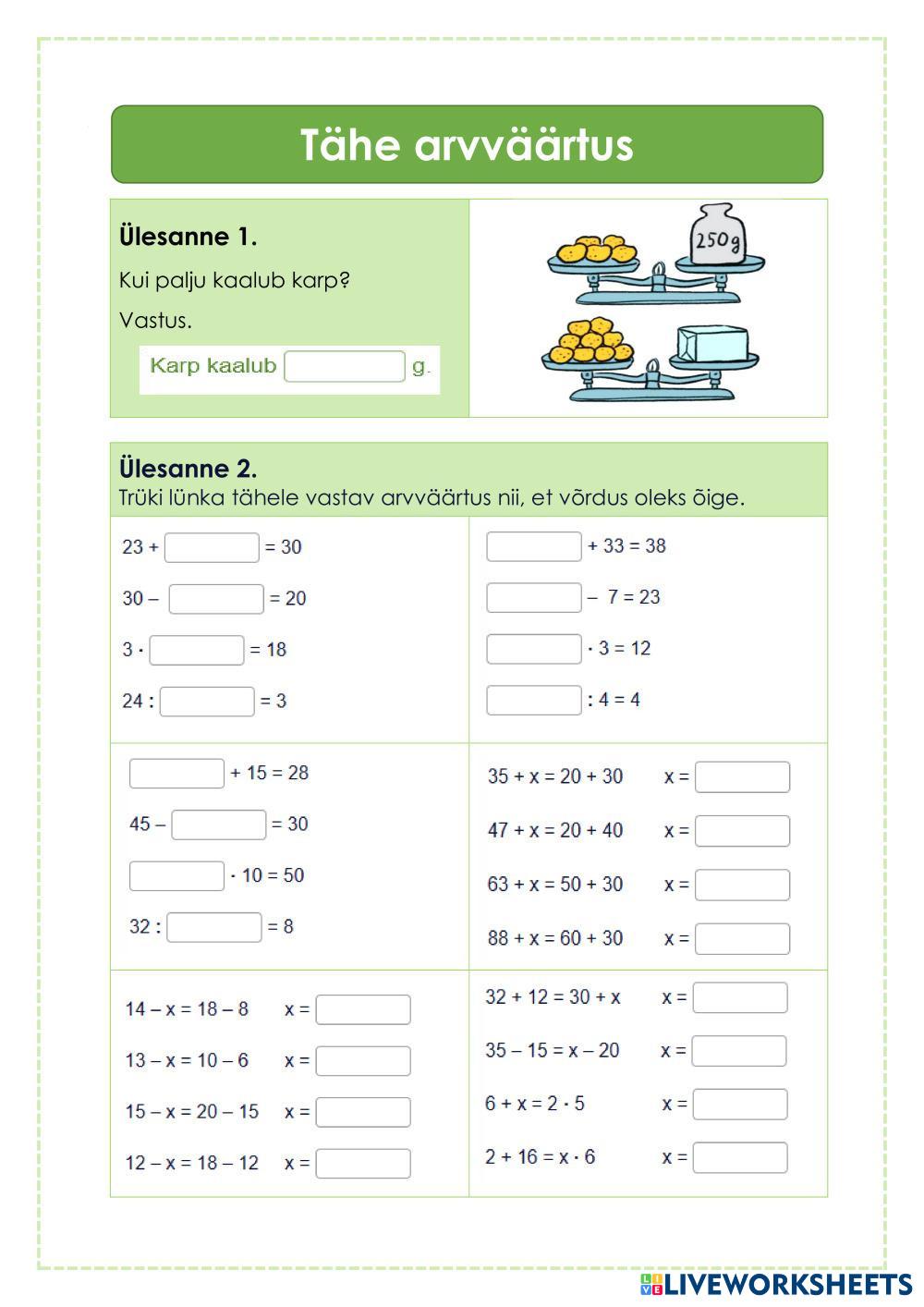iseseisev töö: leia tähe arvväärtus (25 punkti)