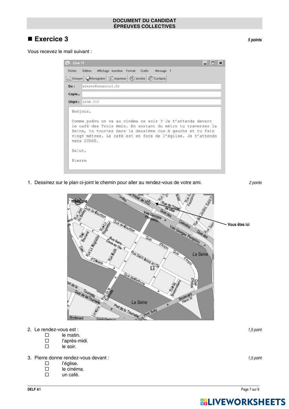 Created by cynder11 ESL French A1-Beginner Listening French Author's Instructions Écoutez les audios et repondre avec la bonnée réponse My Google Classroom Courses × 0 classes selected (0 students total) Quick Access Select all classes (0 classes) All Classes Loading courses... ยกเลิก Share Share to selected Course __COURSE_NAME__ __STUDENT_NAME__ (__STUDENT_EMAIL__) DELF A1 Evaluatión Simulée ดาวน์โหลด Worksheet Validation Check my answers Emails my answers to my teacher ชื่อเต็ม Group/level School subject Teacher's email or key code Close ส่งข้อมูล Validating worksheet... (12) Your answers have been sent to your teacher. Good luck! OK We encountered an error submitting your answers. Please try again. OK โฆษณา | ใช้งานแบบไม่มีโฆษณา Created by cynder11 ESL French A1-Beginner Listening French Author's Instructions Écoutez les audios et repondre avec la bonnée réponse Explore Worksheets LA BOÎTE À SONS ESL A1-Beginner LA BOÎTE À SONS Listening - ESL Complete le texte avec des sons delf a1.1 prim ESL A1-Beginner delf a1.1 prim Listening - ESL delf a1.1 01. Écoute - la présentation ESL A1-Beginner 01. Écoute - la présentation Listening - ESL En esta ficha tenéis que escuchar atentamente lo que dice cada persona. Después tendréis que relacionar su nombre con algunos datos que digan de ellos mismos. Fiche de travail à l'école nationale du cirque ESL A1-Beginner Fiche de travail à l'école nationale du cirque Listening - ESL 🎧 Exercice 1 – Compréhension orale (10 points) Consigne : Écoutez attentivement la présentation de l’élève français et répondez aux questions📝 :