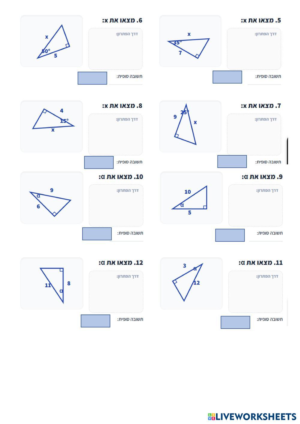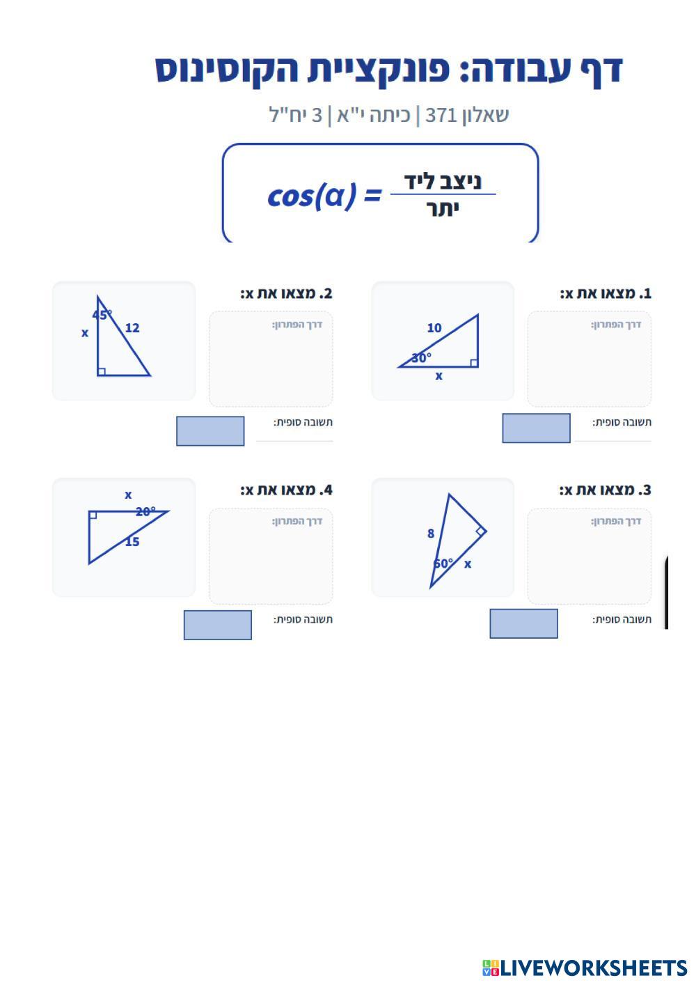 דף עבודה כולל את תרגול הפונקציה קוסינוס