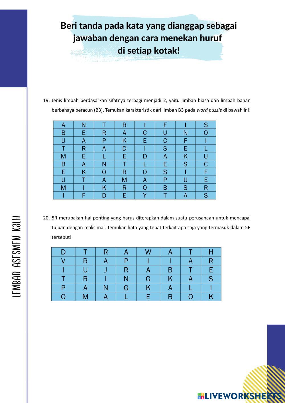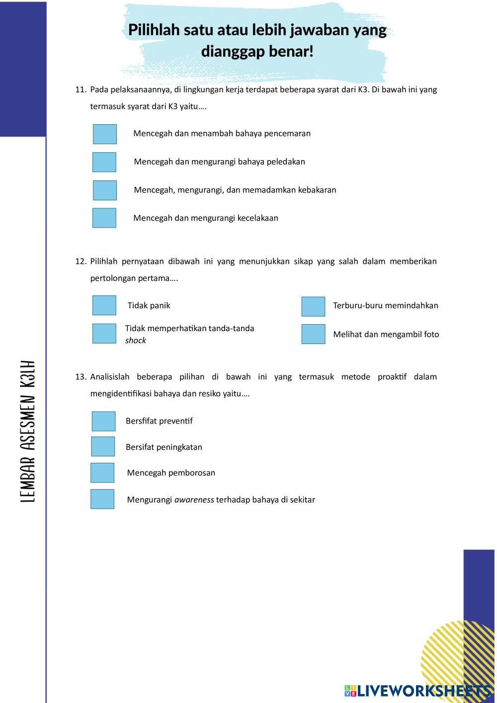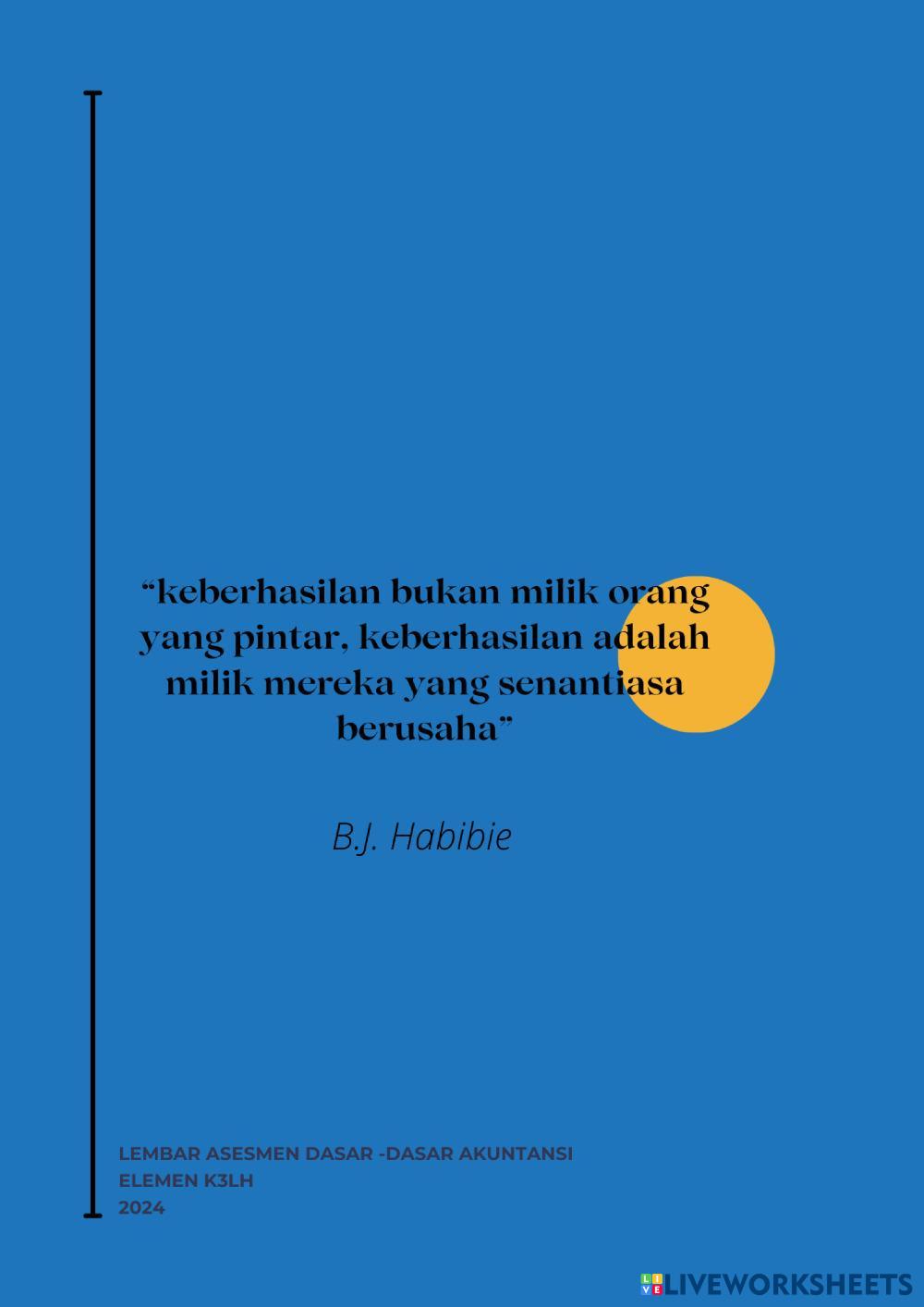 Created byIfanny zahra AKUNTANSI DASAR K3LH Age 14+ level: 10 Indonesian คำแนะนำของผู้เขียน My Google Classroom Courses × 0 classes selected (0 students total) Quick Access Select all classes (0 classes) All Classes Loading courses... ยกเลิก Share Share to selected Course __COURSE_NAME__ __STUDENT_NAME__ (__STUDENT_EMAIL__) LEMBAR ASESMEN DASAR AKUNTANSI ELEMEN 5 ดาวน์โหลด Worksheet Validation Check my answers Emails my answers to my teacher ชื่อเต็ม Group/level School subject Teacher's email or key code Close ส่งข้อมูล Validating worksheet... (12) Your answers have been sent to your teacher. Good luck! OK We encountered an error submitting your answers. Please try again. OK โฆษณา | ใช้งานแบบไม่มีโฆษณา Created byIfanny zahra AKUNTANSI DASAR K3LH Age 14+ level: 10 Indonesian คำแนะนำของผู้เขียน
