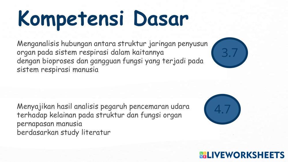 Siswa dapat Menganalisis hubungan antara struktur jaringan penyusun organ pada sistem respirasi dalam kaitannya dengan bioproses dan gangguan fungsi