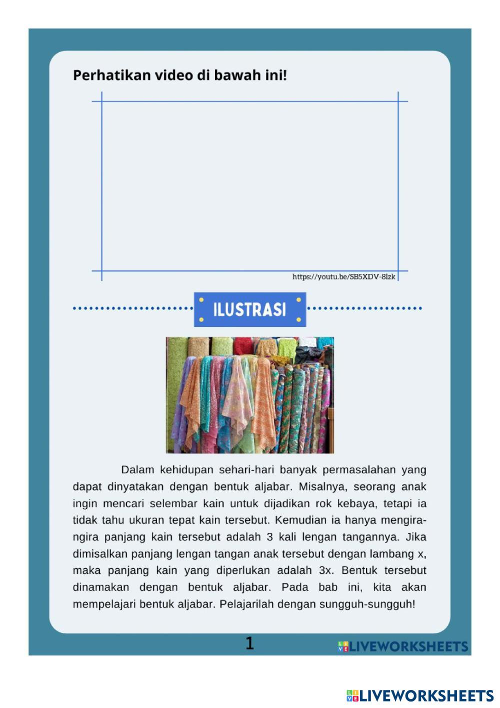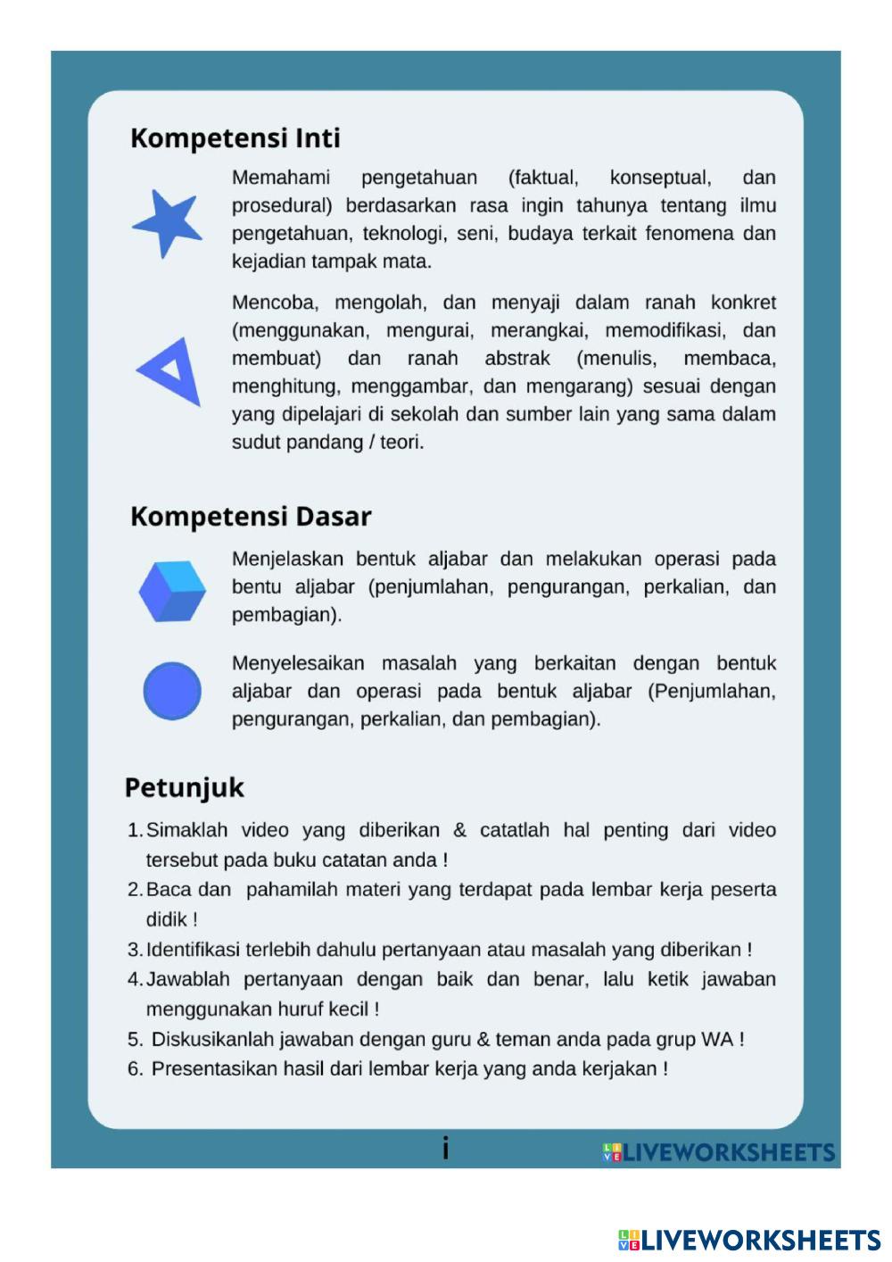 Created byeka sutisna Education Education Age 13-16 level: 2 Indonesian คำแนะนำของผู้เขียน Pembelajaran aljabar My Google Classroom Courses × 0 classes selected (0 students total) Quick Access Select all classes (0 classes) All Classes Loading courses... ยกเลิก Share Share to selected Course __COURSE_NAME__ __STUDENT_NAME__ (__STUDENT_EMAIL__) aljabar ดาวน์โหลด Worksheet Validation Check my answers Emails my answers to my teacher ชื่อเต็ม Group/level School subject Teacher's email or key code Close ส่งข้อมูล Validating worksheet... (12) Your answers have been sent to your teacher. Good luck! OK We encountered an error submitting your answers. Please try again. OK โฆษณา | ใช้งานแบบไม่มีโฆษณา Created byeka sutisna Education Education Age 13-16 level: 2 Indonesian คำแนะนำของผู้เขียน Pembelajaran aljabar