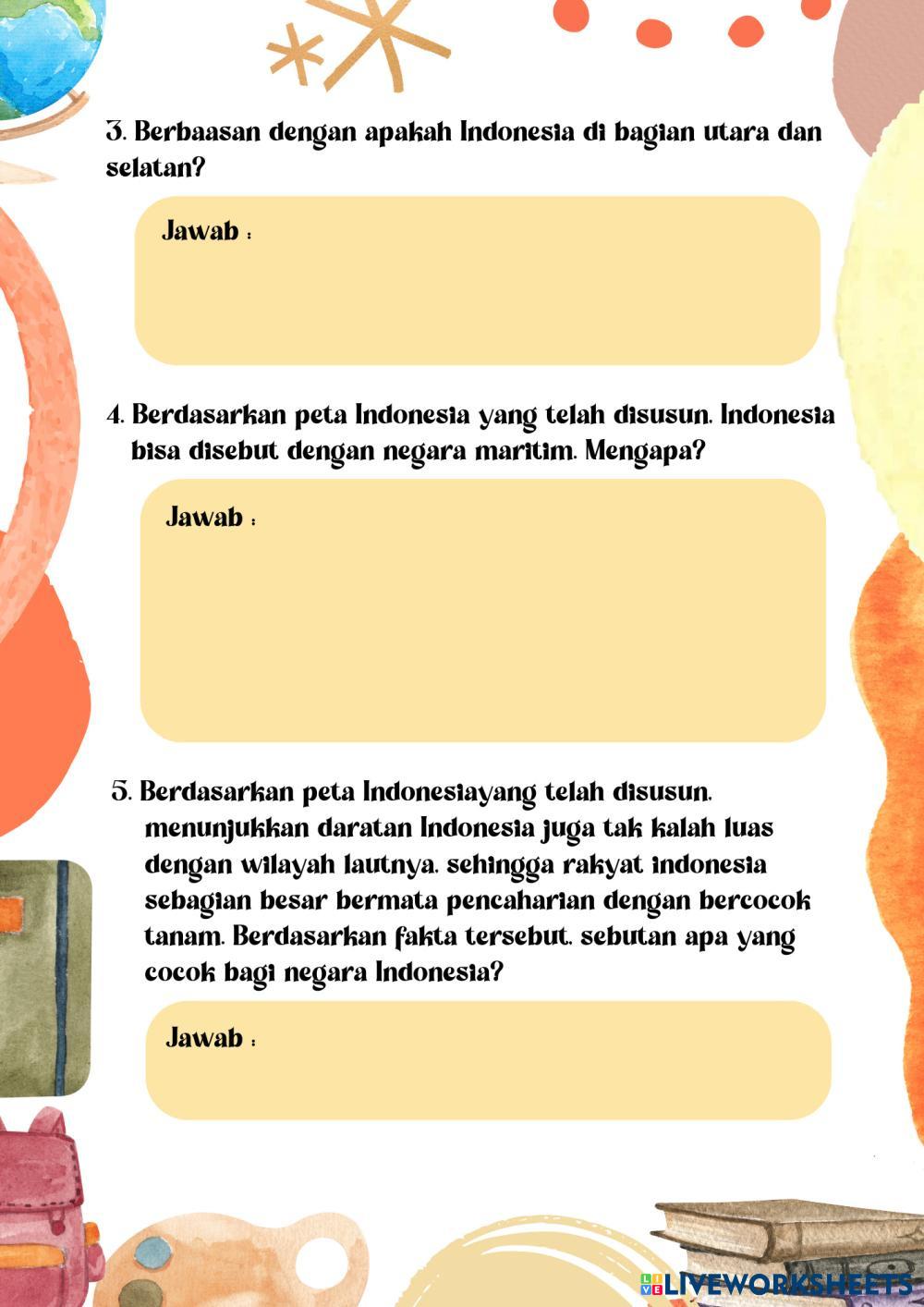 Created byDina Mulia Permata Sari Ilmu Pengetahuan Alam dan Sosial (IPAS) TOPIK A : Bagaimana Bentuk Indonesiaku Age 10+ level: 5 Indonesian คำแนะนำของผู้เขียน My Google Classroom Courses × 0 classes selected (0 students total) Quick Access Select all classes (0 classes) All Classes Loading courses... ยกเลิก Share Share to selected Course __COURSE_NAME__ __STUDENT_NAME__ (__STUDENT_EMAIL__) LKPD IPAS TOPIK A. Bagaimana Bentuk Indonesiaku ดาวน์โหลด Worksheet Validation Check my answers Emails my answers to my teacher ชื่อเต็ม Group/level School subject Teacher's email or key code Close ส่งข้อมูล Validating worksheet... (12) Your answers have been sent to your teacher. Good luck! OK We encountered an error submitting your answers. Please try again. OK โฆษณา | ใช้งานแบบไม่มีโฆษณา Created byDina Mulia Permata Sari Ilmu Pengetahuan Alam dan Sosial (IPAS) TOPIK A : Bagaimana Bentuk Indonesiaku Age 10+ level: 5 Indonesian คำแนะนำของผู้เขียน