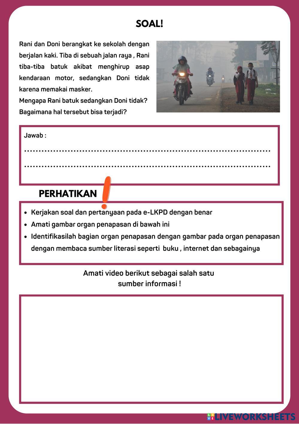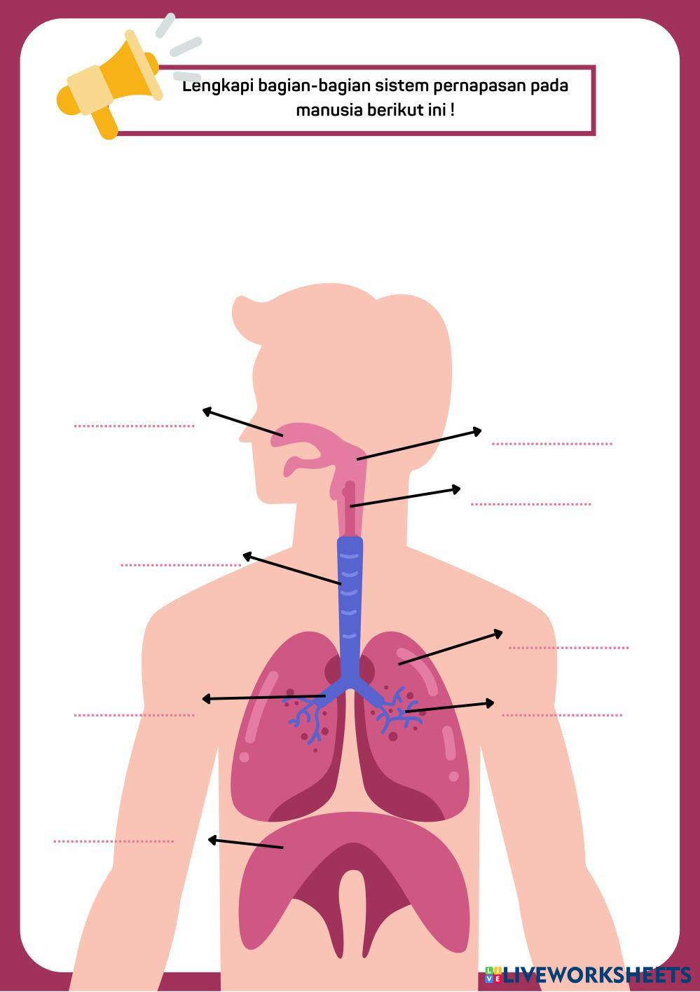 Created byIsta Anifa Adlaa Ilmu Pengetahuan Alam (IPA) Sistem Pernapasan Manusia Age 10+ level: 8 Indonesian คำแนะนำของผู้เขียน Sistem Pernapasan Manusia My Google Classroom Courses × 0 classes selected (0 students total) Quick Access Select all classes (0 classes) All Classes Loading courses... ยกเลิก Share Share to selected Course __COURSE_NAME__ __STUDENT_NAME__ (__STUDENT_EMAIL__) Sistem Pernapasan Manusia ดาวน์โหลด Worksheet Validation Check my answers Emails my answers to my teacher ชื่อเต็ม Group/level School subject Teacher's email or key code Close ส่งข้อมูล Validating worksheet... (12) Your answers have been sent to your teacher. Good luck! OK We encountered an error submitting your answers. Please try again. OK โฆษณา | ใช้งานแบบไม่มีโฆษณา Created byIsta Anifa Adlaa Ilmu Pengetahuan Alam (IPA) Sistem Pernapasan Manusia Age 10+ level: 8 Indonesian คำแนะนำของผู้เขียน Sistem Pernapasan Manusia