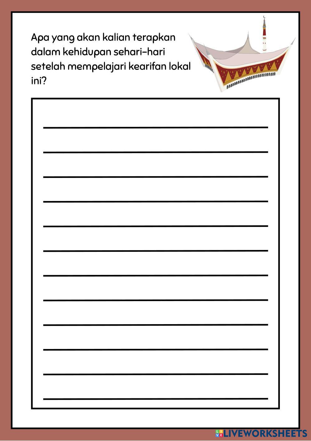 Created byHasanah IPAS Kekayaan Budaya Indonesia Age 10-15 level: 4 Indonesian Author's Instructions My Google Classroom Courses × 0 classes selected (0 students total) Quick Access Select all classes (0 classes) All Classes Loading courses... ยกเลิก Share Share to selected Course __COURSE_NAME__ __STUDENT_NAME__ (__STUDENT_EMAIL__) Lembar Kerja Peserta Didik TOPIK A IPAS ดาวน์โหลด Worksheet Validation Check my answers Emails my answers to my teacher ชื่อเต็ม Group/level School subject Teacher's email or key code Close ส่งข้อมูล Validating worksheet... (12) Your answers have been sent to your teacher. Good luck! OK We encountered an error submitting your answers. Please try again. OK โฆษณา | ใช้งานแบบไม่มีโฆษณา Created byHasanah IPAS Kekayaan Budaya Indonesia Age 10-15 level: 4 Indonesian Author's Instructions