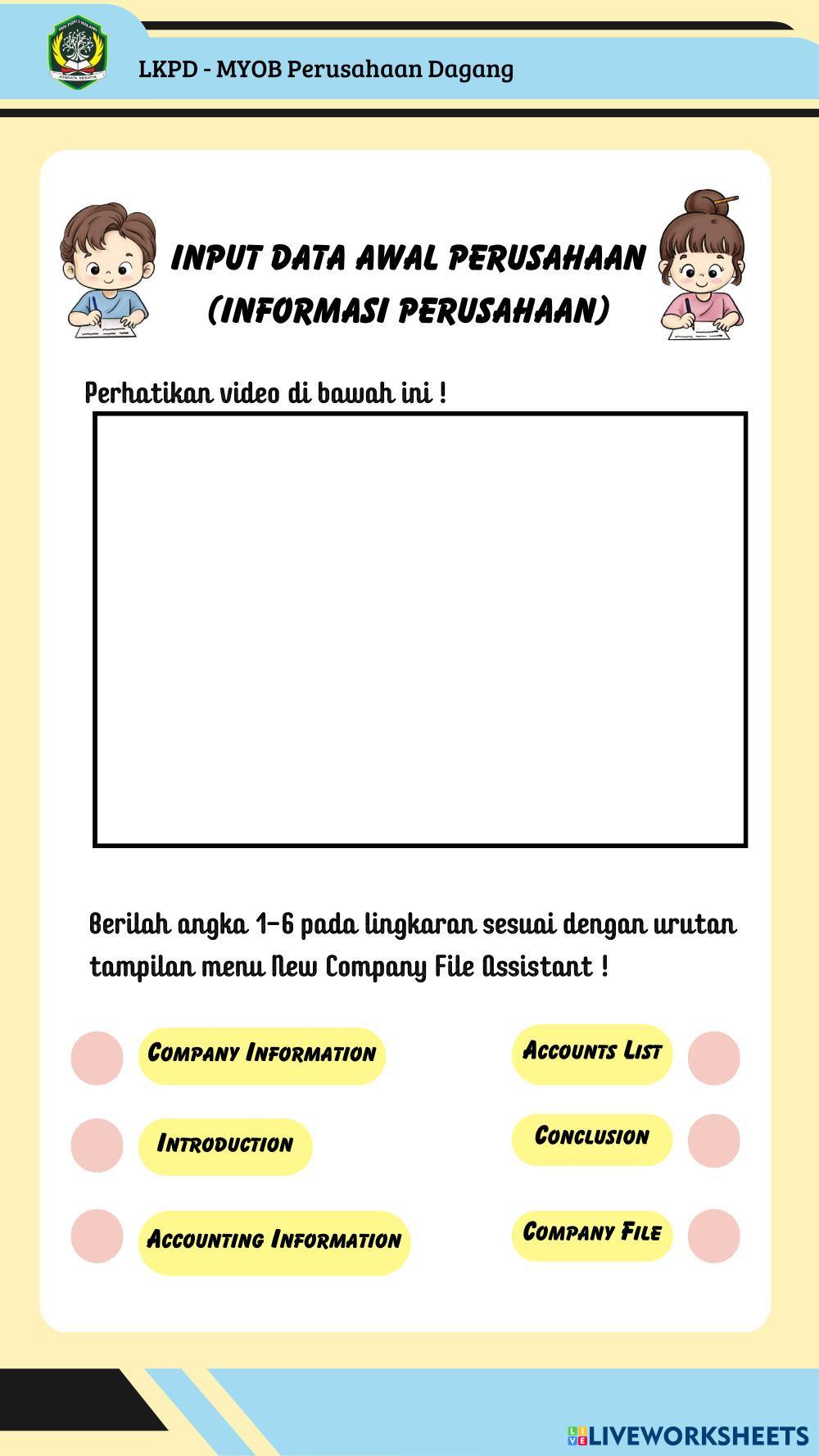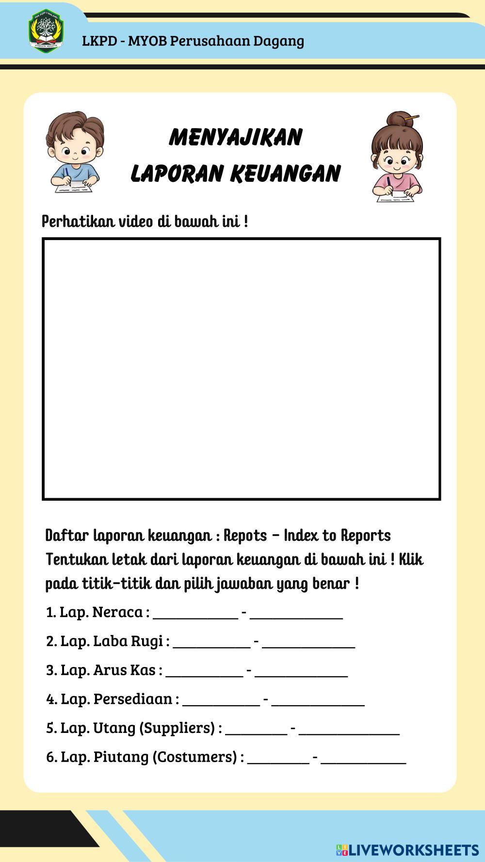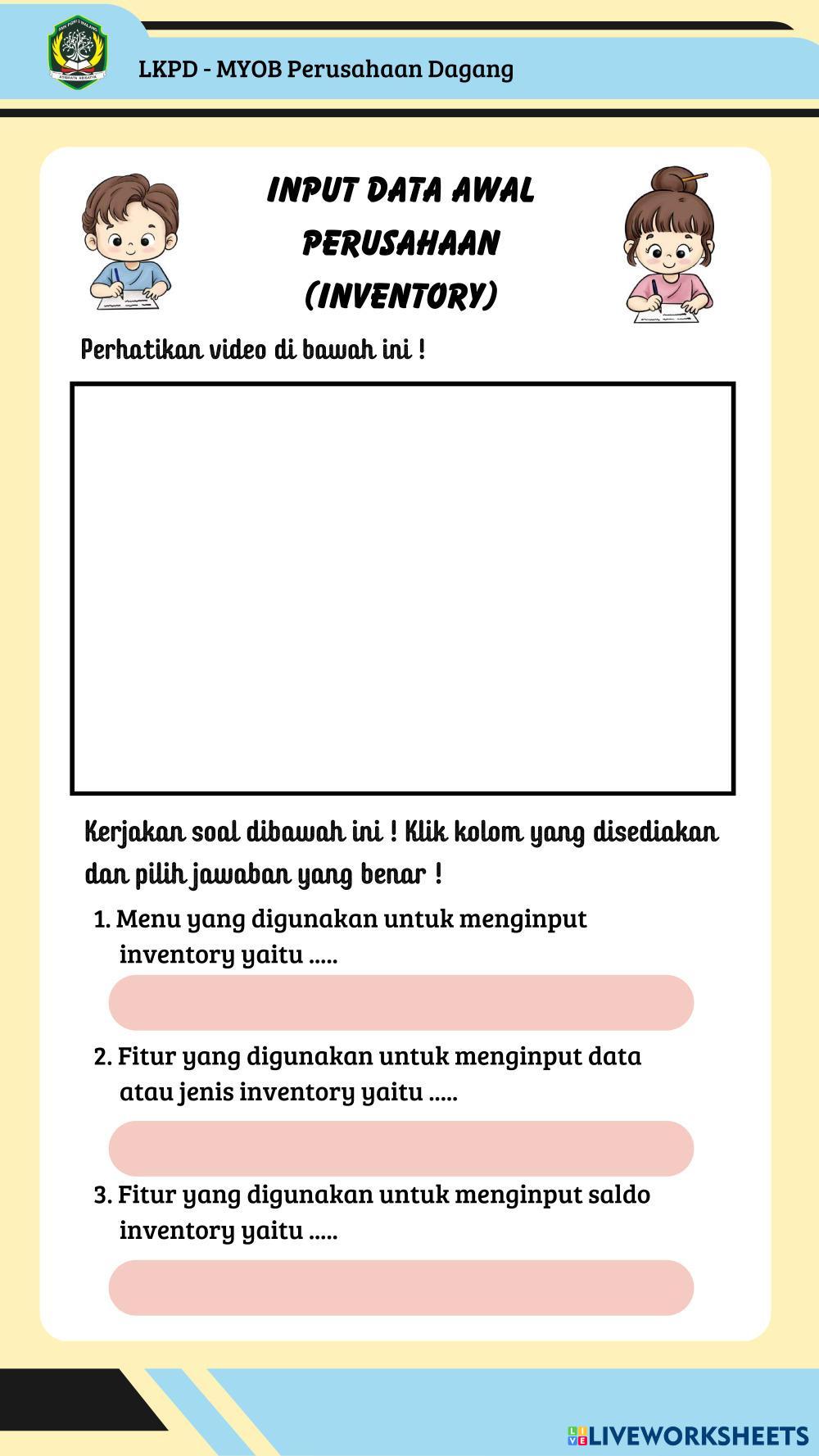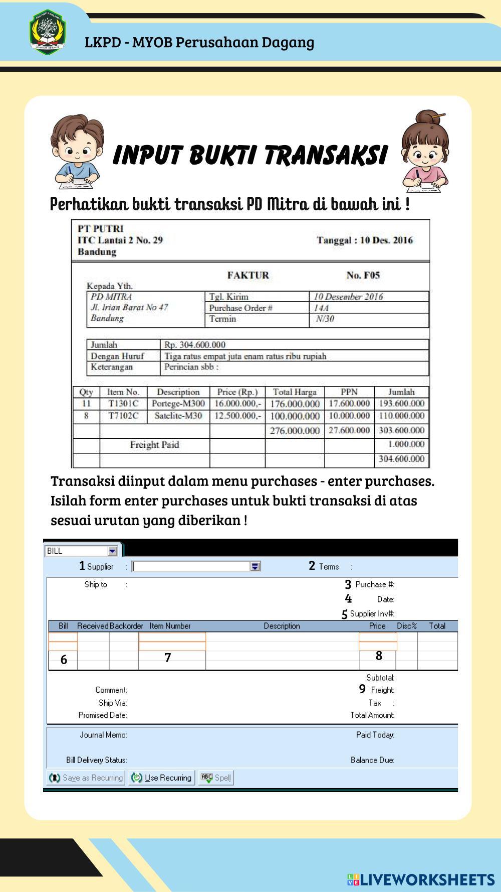 Created byJessica Marchelia Komputer Akuntansi Myob Age 15+ level: 11 Indonesian คำแนะนำของผู้เขียน My Google Classroom Courses × 0 classes selected (0 students total) Quick Access Select all classes (0 classes) All Classes Loading courses... ยกเลิก Share Share to selected Course __COURSE_NAME__ __STUDENT_NAME__ (__STUDENT_EMAIL__) LKPD MYOB-PERUSAHAAN DAGANG ดาวน์โหลด Worksheet Validation Check my answers Emails my answers to my teacher ชื่อเต็ม Group/level School subject Teacher's email or key code Close ส่งข้อมูล Validating worksheet... (12) Your answers have been sent to your teacher. Good luck! OK We encountered an error submitting your answers. Please try again. OK โฆษณา | ใช้งานแบบไม่มีโฆษณา Created byJessica Marchelia Komputer Akuntansi Myob Age 15+ level: 11 Indonesian คำแนะนำของผู้เขียน