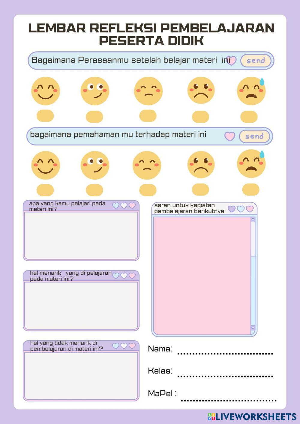 Created bysmp DA sukajawa Lembar refleksi lembar refleksi pembelajaran Age 10-18 level: 7-9 Indonesian คำแนะนำของผู้เขียน My Google Classroom Courses × 0 classes selected (0 students total) Quick Access Select all classes (0 classes) All Classes Loading courses... ยกเลิก Share Share to selected Course __COURSE_NAME__ __STUDENT_NAME__ (__STUDENT_EMAIL__) SMP Darul Arafah Sukajawa ดาวน์โหลด Worksheet Validation Check my answers Emails my answers to my teacher ชื่อเต็ม Group/level School subject Teacher's email or key code Close ส่งข้อมูล Validating worksheet... (12) Your answers have been sent to your teacher. Good luck! OK We encountered an error submitting your answers. Please try again. OK โฆษณา | ใช้งานแบบไม่มีโฆษณา Created bysmp DA sukajawa Lembar refleksi lembar refleksi pembelajaran Age 10-18 level: 7-9 Indonesian คำแนะนำของผู้เขียน