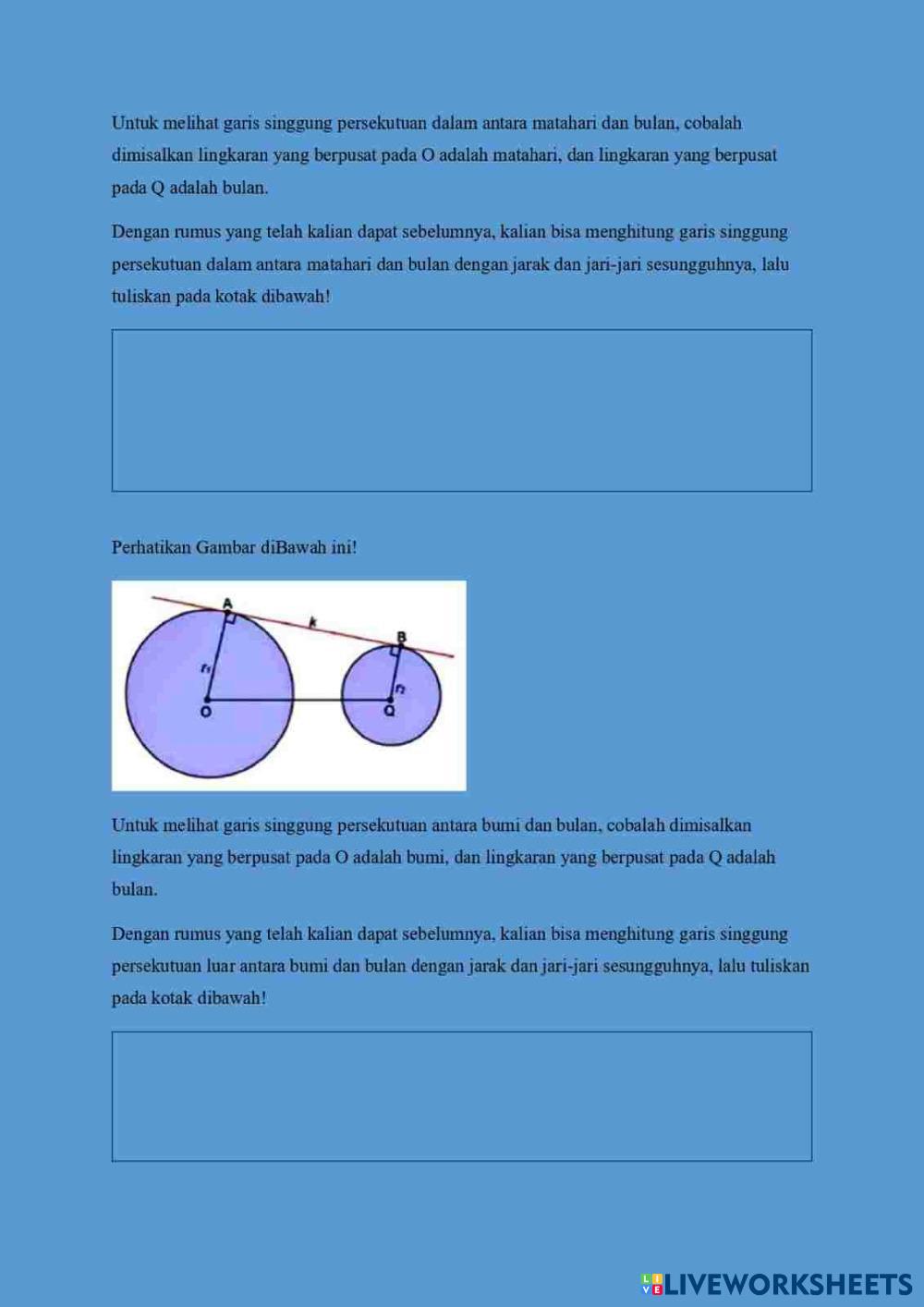 Created byIsfina Unai Matematika Garis Singgung Lingkaran Age 12-17 level: 8 Indonesian คำแนะนำของผู้เขียน My Google Classroom Courses × 0 classes selected (0 students total) Quick Access Select all classes (0 classes) All Classes Loading courses... ยกเลิก Share Share to selected Course __COURSE_NAME__ __STUDENT_NAME__ (__STUDENT_EMAIL__) LKPD MTK ดาวน์โหลด Worksheet Validation Check my answers Emails my answers to my teacher ชื่อเต็ม Group/level School subject Teacher's email or key code Close ส่งข้อมูล Validating worksheet... (12) Your answers have been sent to your teacher. Good luck! OK We encountered an error submitting your answers. Please try again. OK โฆษณา | ใช้งานแบบไม่มีโฆษณา Created byIsfina Unai Matematika Garis Singgung Lingkaran Age 12-17 level: 8 Indonesian คำแนะนำของผู้เขียน