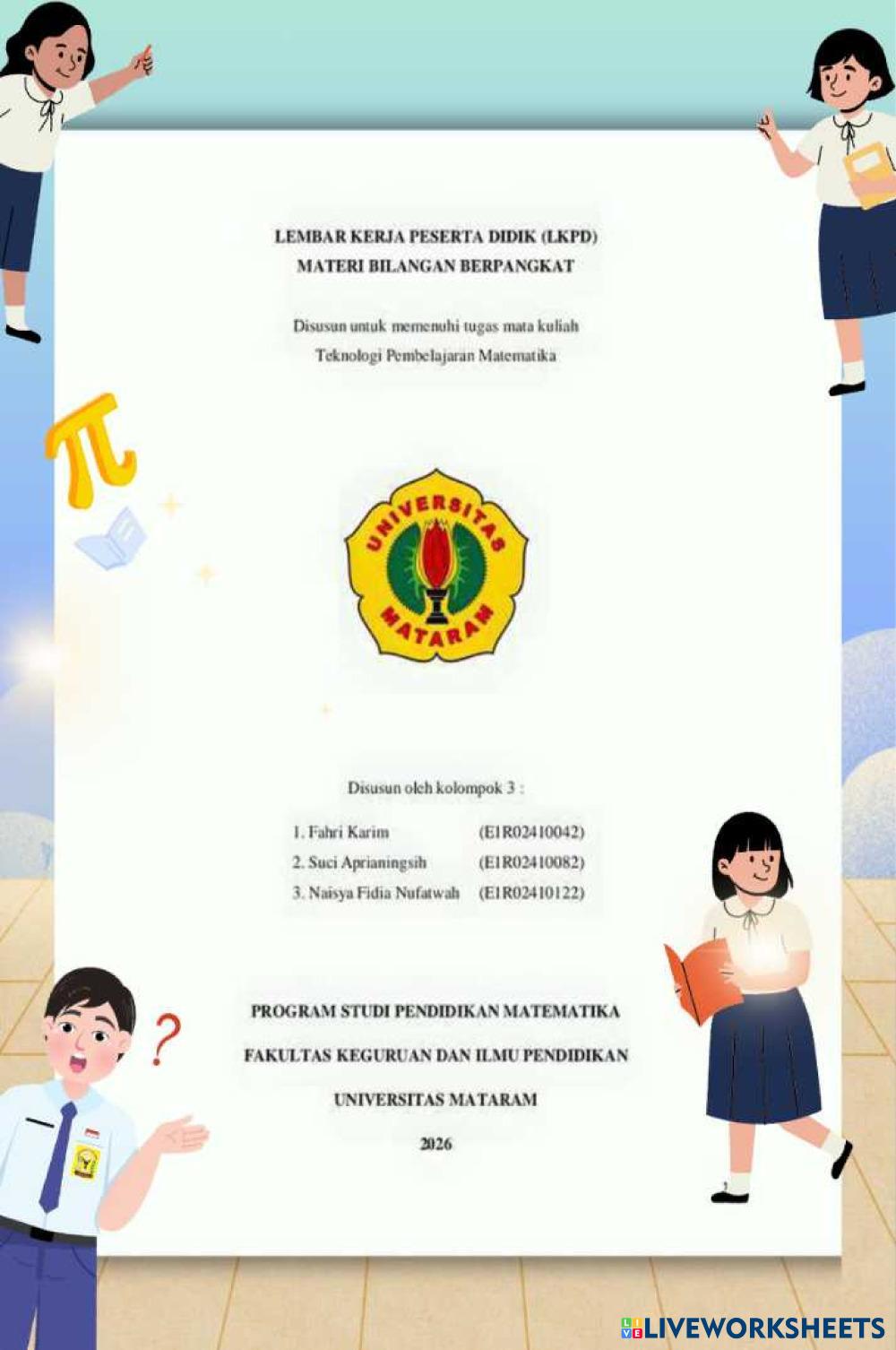 Created byFahriKarim_ คณิตศาสตร์ มัธยมศึกษาตอนปลาย ม.6 (มัธยมศึกษาปีที่ 6) พีชคณิต Indonesian คำแนะนำของผู้เขียน kerjakan My Google Classroom Courses × 0 classes selected (0 students total) Quick Access Select all classes (0 classes) All Classes Loading courses... ยกเลิก Share Share to selected Course __COURSE_NAME__ __STUDENT_NAME__ (__STUDENT_EMAIL__) LKPD kelas 8 ดาวน์โหลด Worksheet Validation Check my answers Emails my answers to my teacher ชื่อเต็ม Group/level School subject Teacher's email or key code Close ส่งข้อมูล Validating worksheet... (12) Your answers have been sent to your teacher. Good luck! OK We encountered an error submitting your answers. Please try again. OK โฆษณา | ใช้งานแบบไม่มีโฆษณา Created byFahriKarim_ คณิตศาสตร์ มัธยมศึกษาตอนปลาย ม.6 (มัธยมศึกษาปีที่ 6) พีชคณิต Indonesian คำแนะนำของผู้เขียน kerjakan สำรวจแผ่นงาน Тест Math 12th grade Тест Algebra - Math Выберите правильный ответ Точки экстремума Math 12th grade Точки экстремума Algebra - Math Если вы согласны с высказываниями ниже, то впишите «да», если не согласны – впишите «нет» в выделенные области. Свойства функций y = tg x и y = ctg x Math 12th grade Свойства функций y = tg x и y = ctg x Algebra - Math Если согласны с утверждением, напишите «да», если утверждение неверное, напишите «нет». Свойства функции y = cos x Math 12th grade Свойства функции y = cos x Algebra - Math Если согласны с утверждением, напишите «да», если утверждение неверное, напишите «нет».
