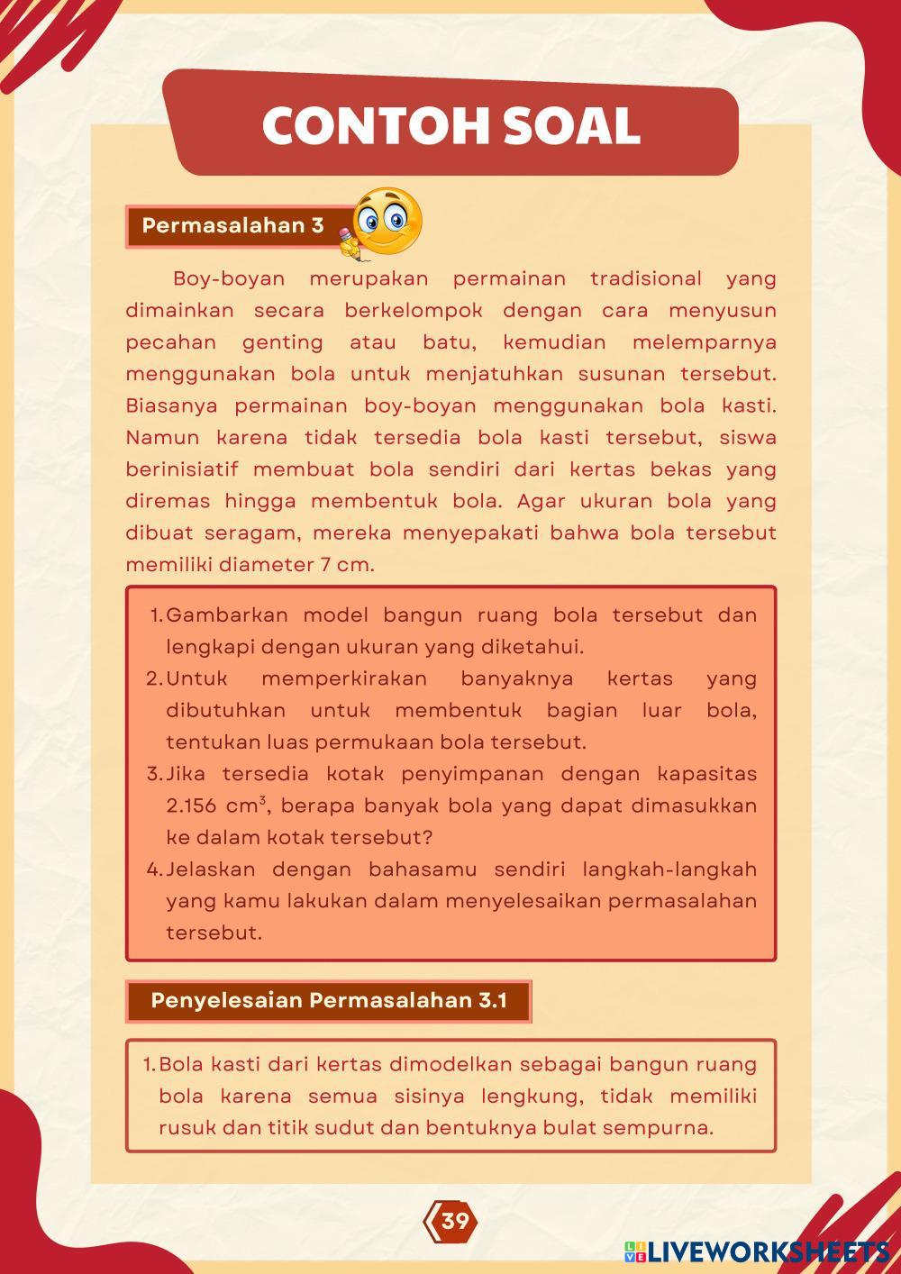E-LKPD Berbasis Etnomatematika Budaya Sunda ini digunakan sebagai bahan ajar interaktif untuk peserta didik kelas IX pada materi Bangun Ruang Sisi Lengkung.