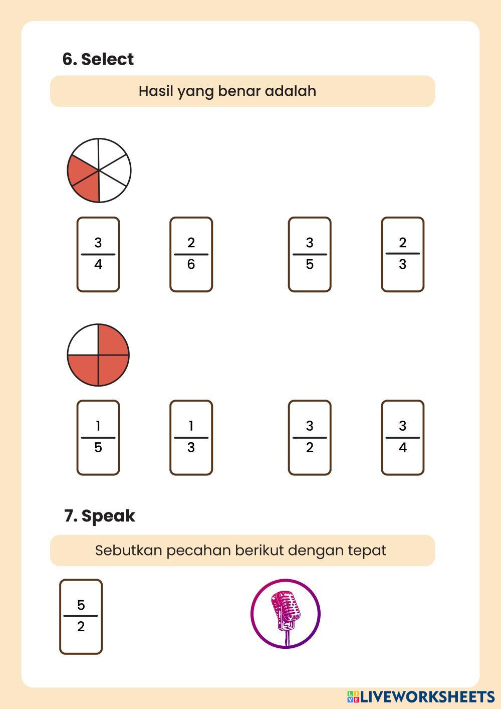 Siswa dapat mengidentifikasi pembilang dan penyebut dalam pecahan. Siswa dapat menggunakan pecahan untuk memecahakan masalah dalam kehidupan sehari-hari, seperti membagi makanan.