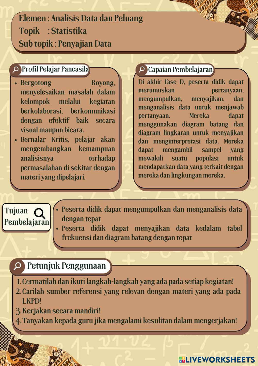 Kerjakan secara mandiri dan tanyakan pada guru jika merasa kesulitan! SEMANGAT!!!