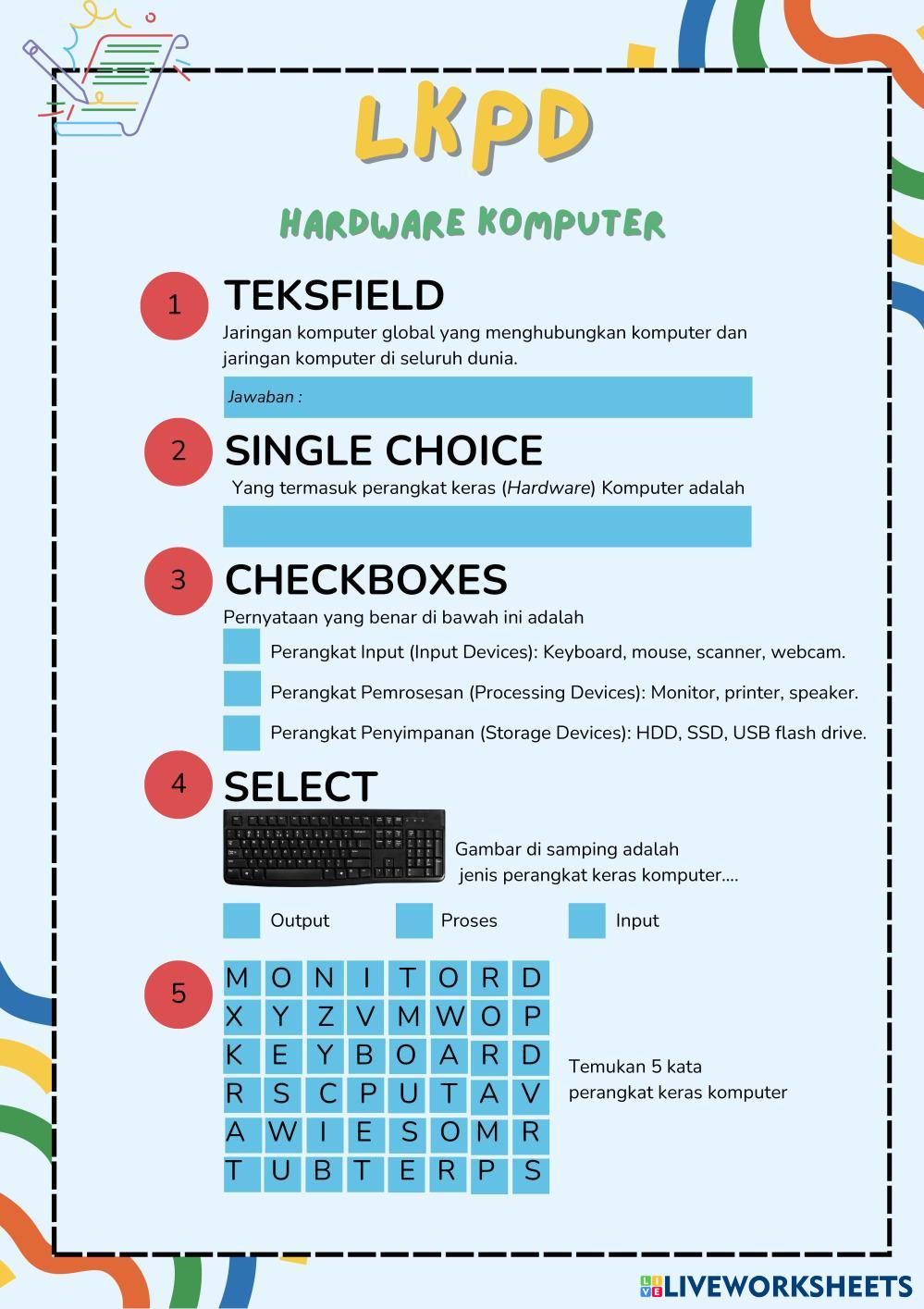 Created byAde Widi Wicaksana Media pembelajaran perangkat keras komputer Age 12+ level: Kelas 10 Indonesian คำแนะนำของผู้เขียน My Google Classroom Courses × 0 classes selected (0 students total) Quick Access Select all classes (0 classes) All Classes Loading courses... ยกเลิก Share Share to selected Course __COURSE_NAME__ __STUDENT_NAME__ (__STUDENT_EMAIL__) LKPD Informatika Perangkat Keras Komputer ดาวน์โหลด Worksheet Validation Check my answers Emails my answers to my teacher ชื่อเต็ม Group/level School subject Teacher's email or key code Close ส่งข้อมูล Validating worksheet... (12) Your answers have been sent to your teacher. Good luck! OK We encountered an error submitting your answers. Please try again. OK โฆษณา | ใช้งานแบบไม่มีโฆษณา Created byAde Widi Wicaksana Media pembelajaran perangkat keras komputer Age 12+ level: Kelas 10 Indonesian คำแนะนำของผู้เขียน