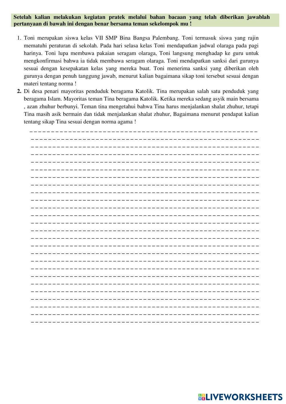 Created byTri Utari Pendidikan Pancasila Norma Age 10-18 level: 7 Indonesian Author's Instructions My Google Classroom Courses × 0 classes selected (0 students total) Quick Access Select all classes (0 classes) All Classes Loading courses... ยกเลิก Share Share to selected Course __COURSE_NAME__ __STUDENT_NAME__ (__STUDENT_EMAIL__) LKPD Pendidikan Pancasila ดาวน์โหลด Worksheet Validation Check my answers Emails my answers to my teacher ชื่อเต็ม Group/level School subject Teacher's email or key code Close ส่งข้อมูล Validating worksheet... (12) Your answers have been sent to your teacher. Good luck! OK We encountered an error submitting your answers. Please try again. OK โฆษณา | ใช้งานแบบไม่มีโฆษณา Created byTri Utari Pendidikan Pancasila Norma Age 10-18 level: 7 Indonesian Author's Instructions
