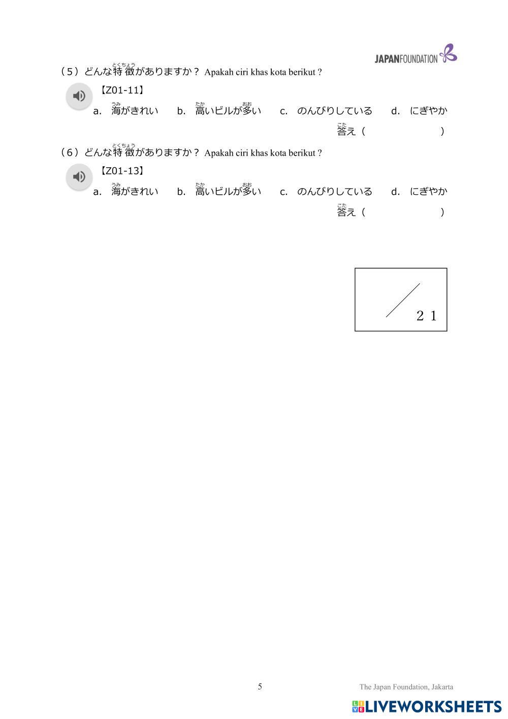 Created byLPK SGM 日本語 日本語 Age 18+ level: N4 Indonesian คำแนะนำของผู้เขียน My Google Classroom Courses × 0 classes selected (0 students total) Quick Access Select all classes (0 classes) All Classes Loading courses... ยกเลิก Share Share to selected Course __COURSE_NAME__ __STUDENT_NAME__ (__STUDENT_EMAIL__) 第1課「初級2」聴解練習問題「いろどり」 ดาวน์โหลด Worksheet Validation Check my answers Emails my answers to my teacher ชื่อเต็ม Group/level School subject Teacher's email or key code Close ส่งข้อมูล Validating worksheet... (12) Your answers have been sent to your teacher. Good luck! OK We encountered an error submitting your answers. Please try again. OK โฆษณา | ใช้งานแบบไม่มีโฆษณา Created byLPK SGM 日本語 日本語 Age 18+ level: N4 Indonesian คำแนะนำของผู้เขียน