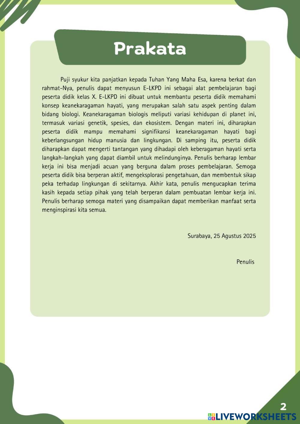 E-LKPD 1 Berbasis Project Based Learning Materi Keanekaragaman Hayati