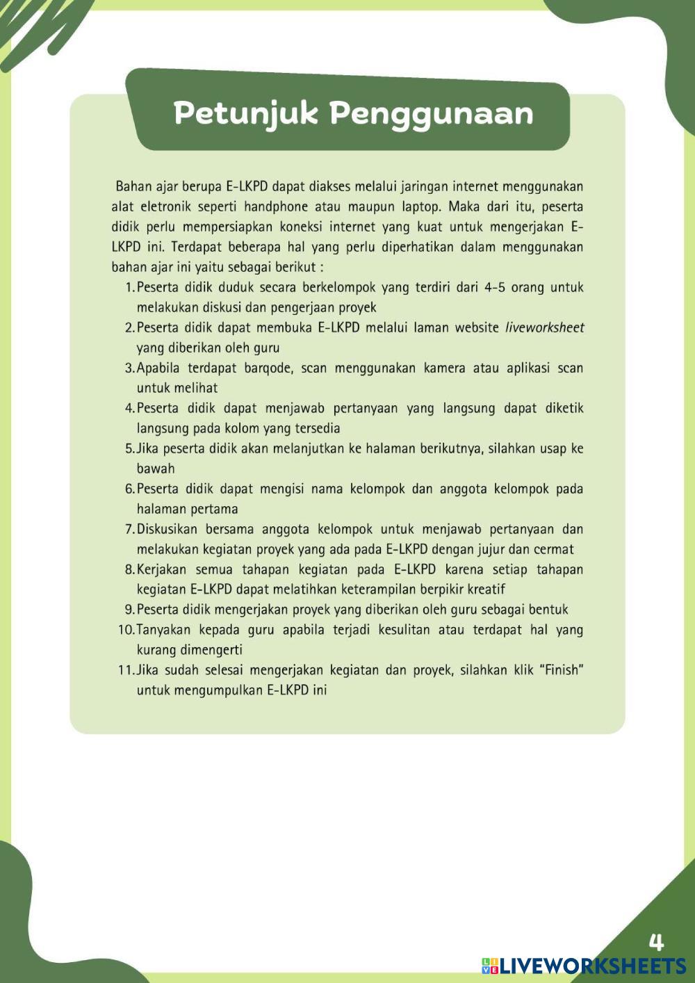 - 1. Silahkan kerjakan E-LKPD ini secara berkelompok