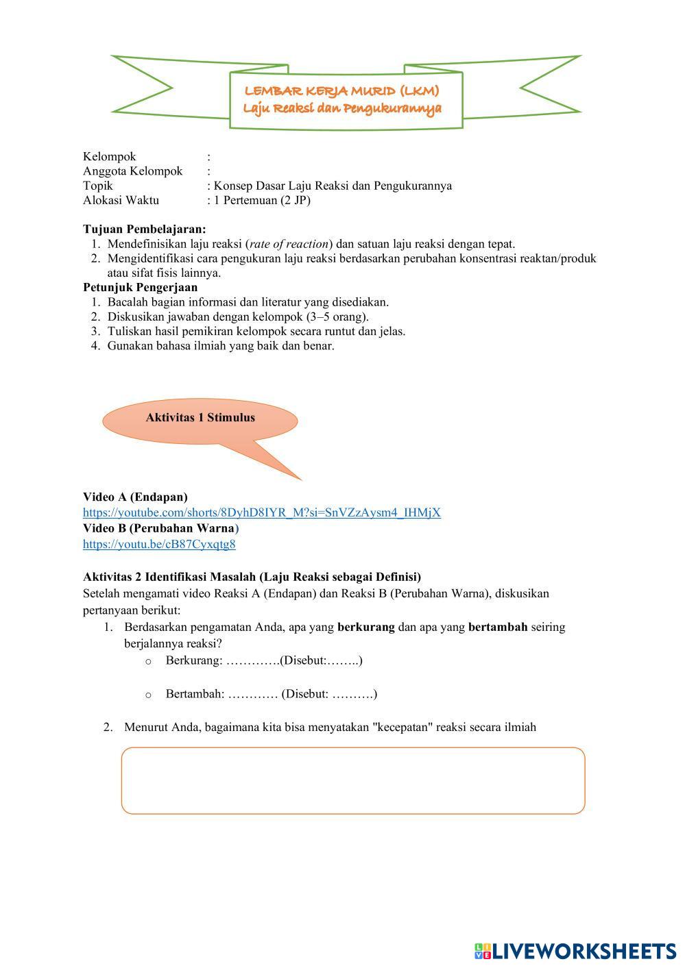 Bacalah dan cermatilah Lembar kerja berikut kerjakan sesuai petunjuk yang tertera