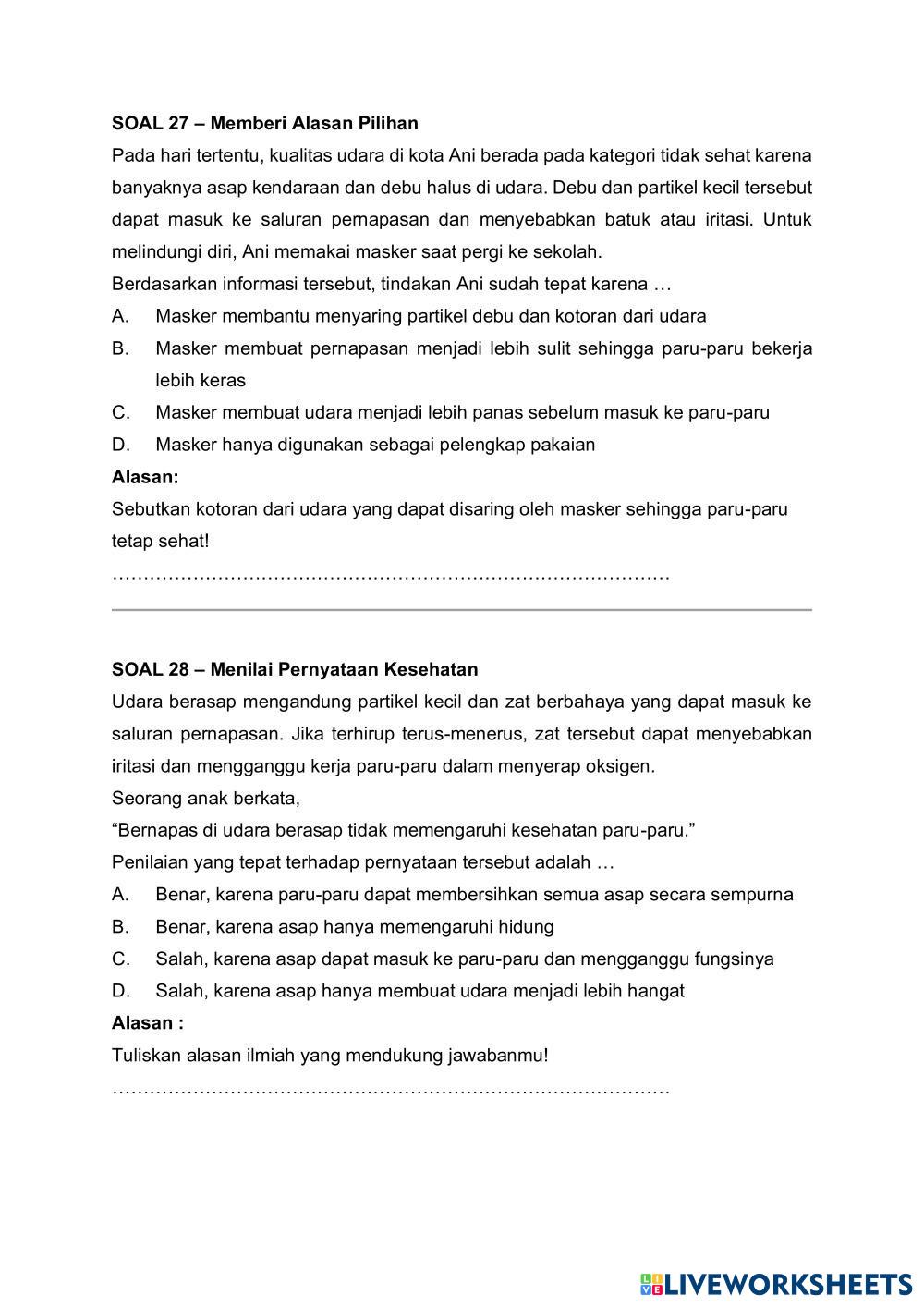 - Tuliskan alasanmu dengan singkat dan jelas pada kolom jawaban.