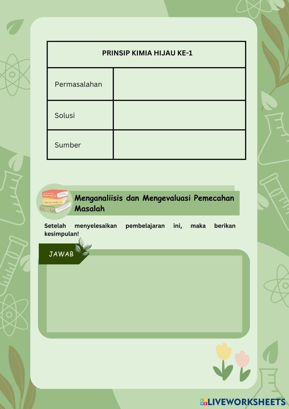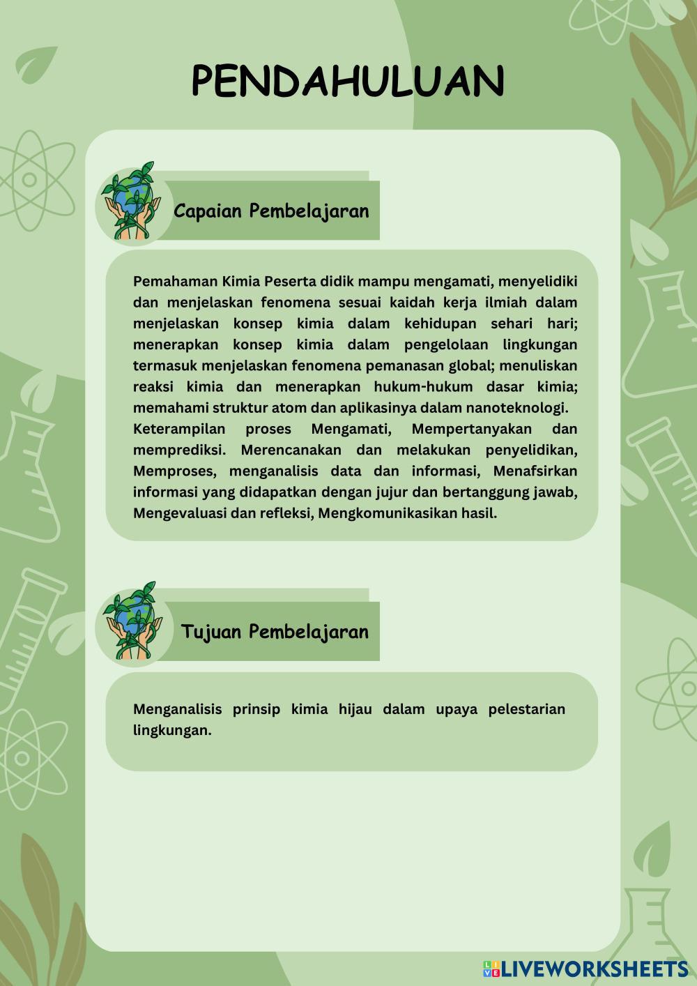 Materi kimia hijau dalam pencegahan limbah anorganik untuk siswa kelas 10 sekolah SMA sebagai bentuk latihan kegiatan pembelajaran siswa