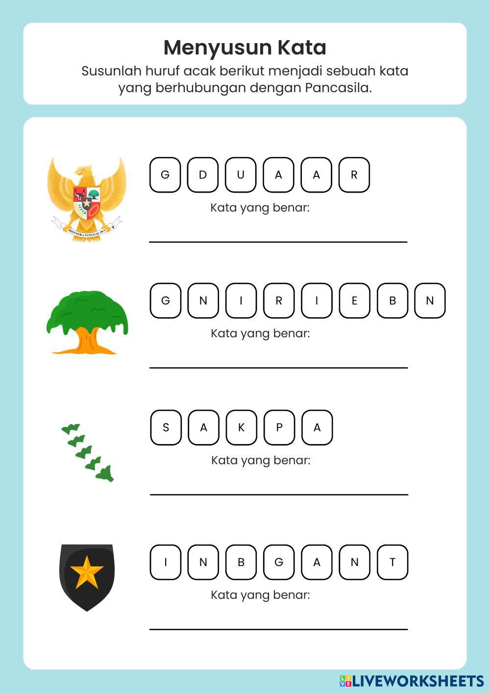 Created byLulu’ah Ukhti Isnaini สังคมศึกษา ประถมศึกษา ป.2 (ประถมศึกษาปีที่ 2) พลเมืองและรัฐบาล Indonesian คำแนะนำของผู้เขียน mengenal simbol-simbol pancasila My Google Classroom Courses × 0 classes selected (0 students total) Quick Access Select all classes (0 classes) All Classes Loading courses... ยกเลิก Share Share to selected Course __COURSE_NAME__ __STUDENT_NAME__ (__STUDENT_EMAIL__) mengenal simbol-simbol pancasila ดาวน์โหลด Worksheet Validation Check my answers Emails my answers to my teacher ชื่อเต็ม Group/level School subject Teacher's email or key code Close ส่งข้อมูล Validating worksheet... (12) Your answers have been sent to your teacher. Good luck! OK We encountered an error submitting your answers. Please try again. OK โฆษณา | ใช้งานแบบไม่มีโฆษณา Created byLulu’ah Ukhti Isnaini สังคมศึกษา ประถมศึกษา ป.2 (ประถมศึกษาปีที่ 2) พลเมืองและรัฐบาล Indonesian คำแนะนำของผู้เขียน mengenal simbol-simbol pancasila สำรวจแผ่นงาน zzz Social Studies 2nd grade zzz Civics and Government - Social Studies nn zzz Social Studies 2nd grade zzz Civics and Government - Social Studies nn zzz Social Studies 2nd grade zzz Civics and Government - Social Studies nn Hidup rukun di rumah dan sekolah Social Studies 2nd grade Hidup rukun di rumah dan sekolah Civics and Government - Social Studies Jawab pertanyaan berikut dengan benar!