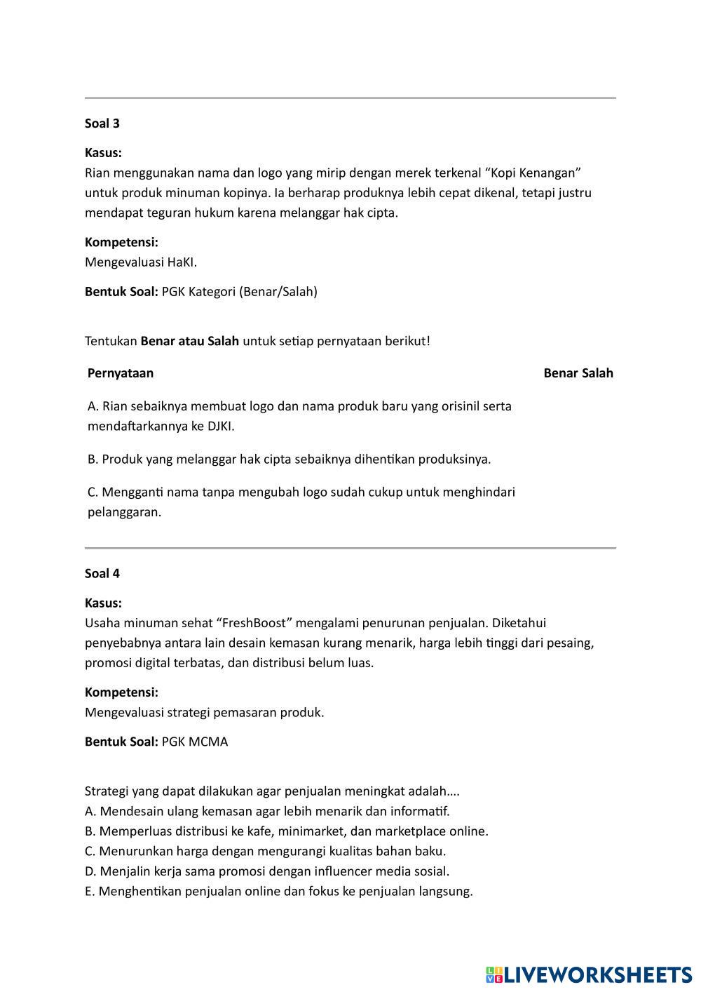 SOAL LATIHAN PERSIAPAN TKA MATA PELAJARAN PKWU