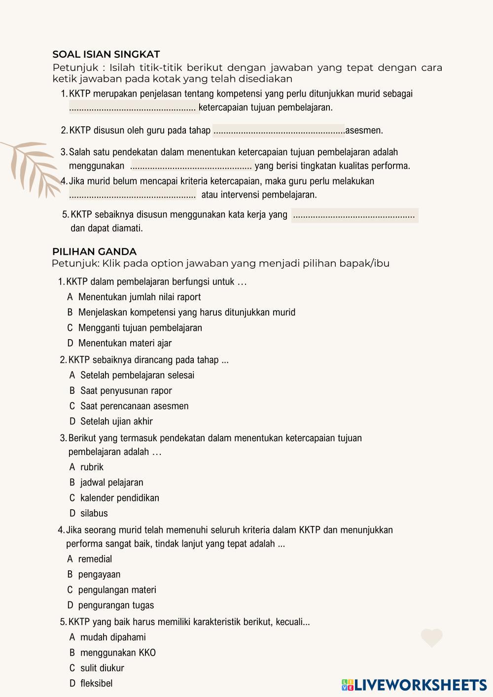 Setelah membaca dan memahami tentang perancangan KKTP kerjakan soal-soal evaluasi yang telah tersedia. Bapak/ibu memiliki waktu 60 menit untuk mengerjakannya. Selamat belajar bapak/ibu