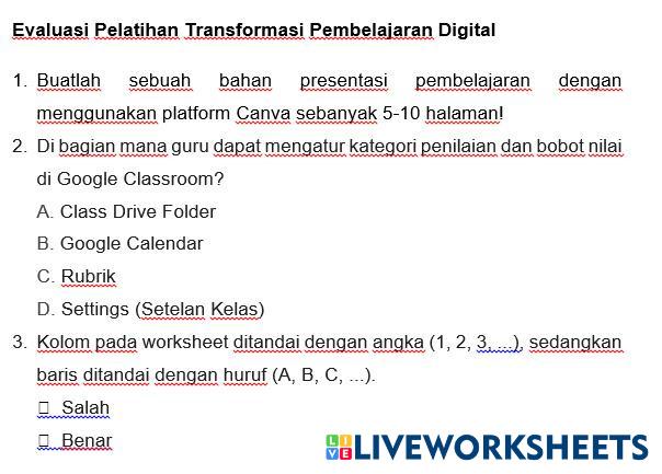 EVALUASI PELATIHAN TRANSFORMASI PEMBELAJARAN DIGITAL