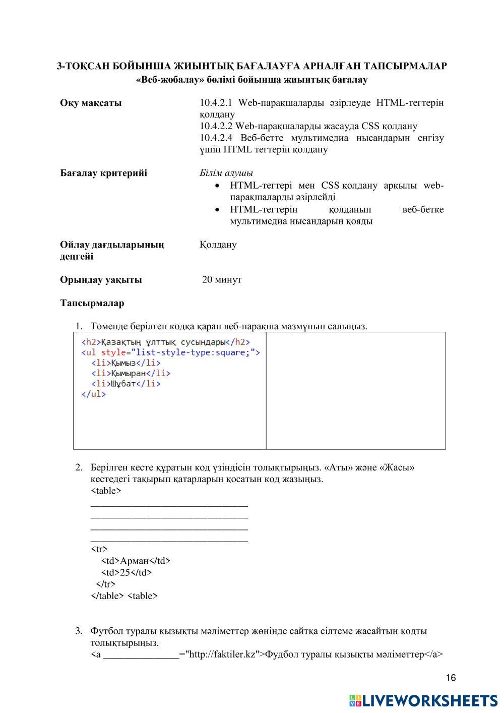 10.4.2.2 Web-парақшаларды жасауда CSS қолдану 10.4.2.4 Веб-бетте мультимедиа нысандарын енгізу үшін HTML тегтерін қолдану