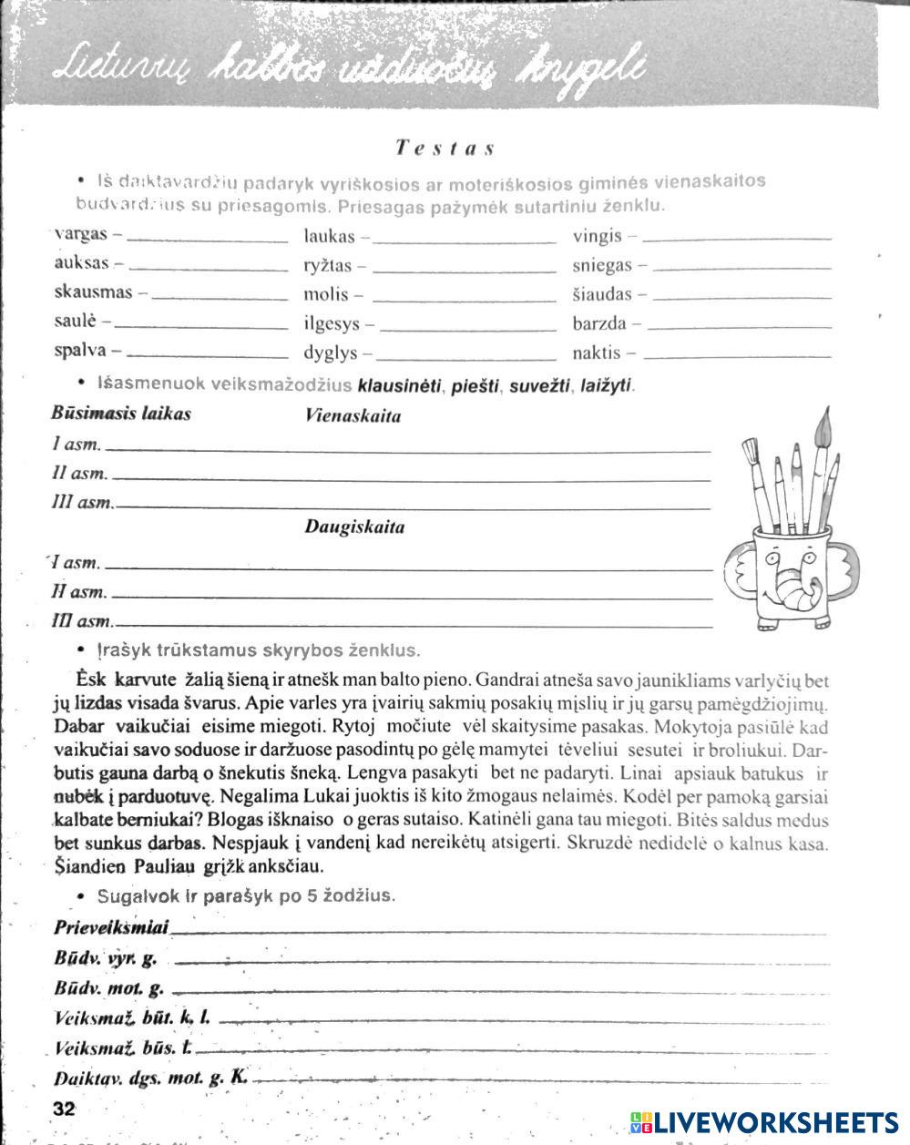 Created byJustyna English Language Middle School 6th grade Grammar Lithuanian Author's Instructions Gramatikos užduotys My Google Classroom Courses × 0 classes selected (0 students total) Quick Access Select all classes (0 classes) All Classes Loading courses... ยกเลิก Share Share to selected Course __COURSE_NAME__ __STUDENT_NAME__ (__STUDENT_EMAIL__) Įvairios užduotys ดาวน์โหลด Worksheet Validation Check my answers Emails my answers to my teacher ชื่อเต็ม Group/level School subject Teacher's email or key code Close ส่งข้อมูล Validating worksheet... (12) Your answers have been sent to your teacher. Good luck! OK We encountered an error submitting your answers. Please try again. OK โฆษณา | ใช้งานแบบไม่มีโฆษณา Created byJustyna English Language Middle School 6th grade Grammar Lithuanian Author's Instructions Gramatikos užduotys Explore Worksheets Together 6 U2 Grammar 1 English Language 6th grade Together 6 U2 Grammar 1 Grammar - English Language Complete ورقة عمل النعت ومطابقته للمنعوت English Language 6th grade ورقة عمل النعت ومطابقته للمنعوت Grammar - English Language ورقة عمل النعت ومطابقته للمنعوت Think 1 Unit 6 Past Simple Irregular Verbs English Language 6th grade Think 1 Unit 6 Past Simple Irregular Verbs Grammar - English Language Past simple irregular forms Think 1 Unit 6 Past Simple Irregular Verbs English Language 6th grade Think 1 Unit 6 Past Simple Irregular Verbs Grammar - English Language Know the past forms of irregular verbs.