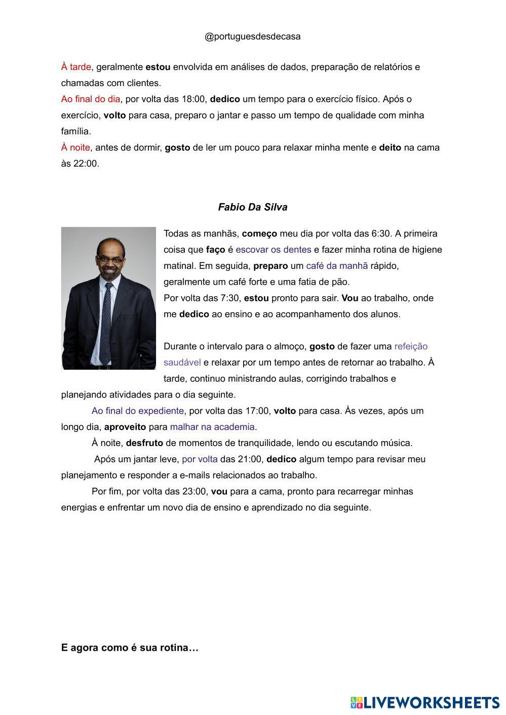 Presente verbos irregulares e rotina