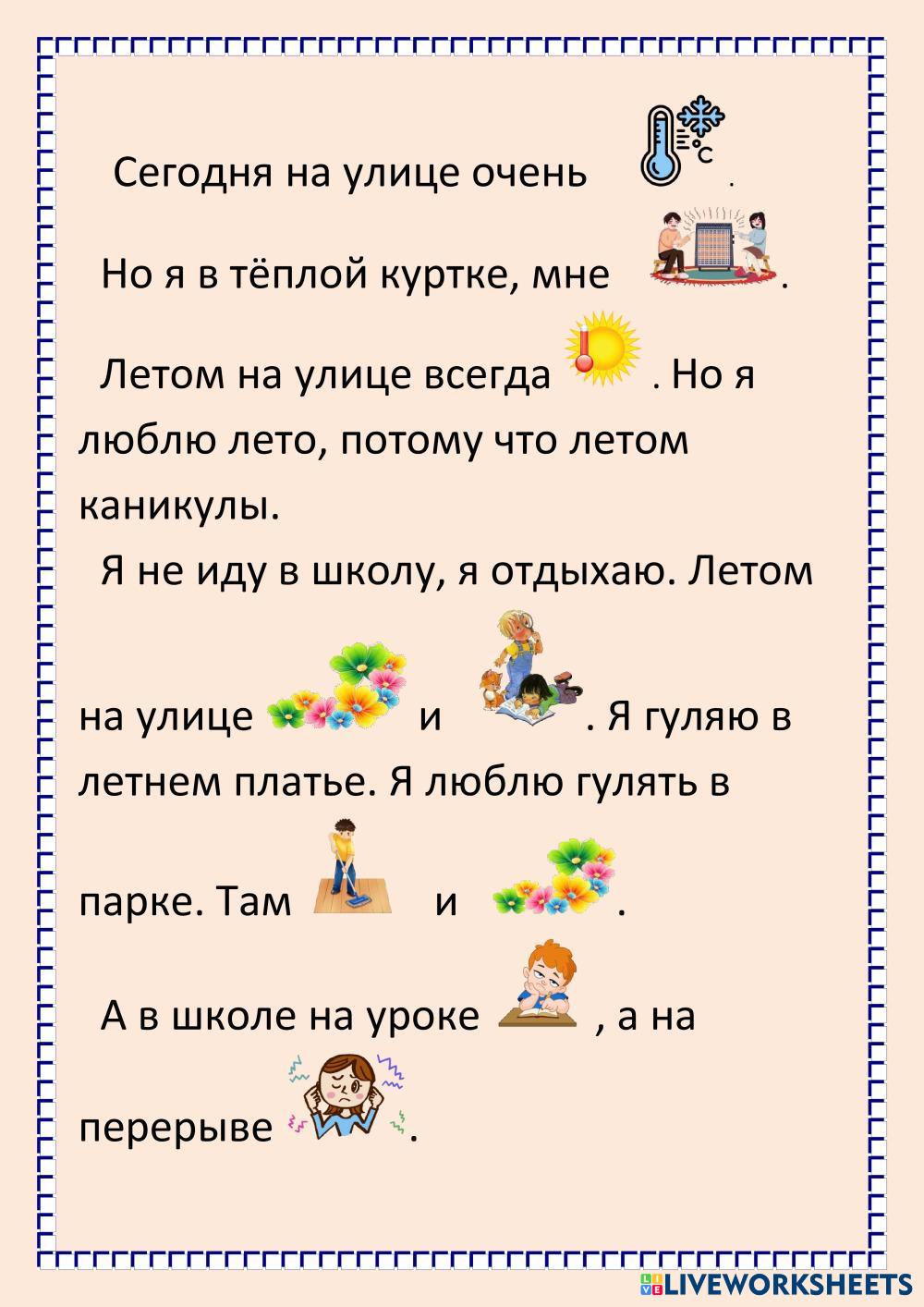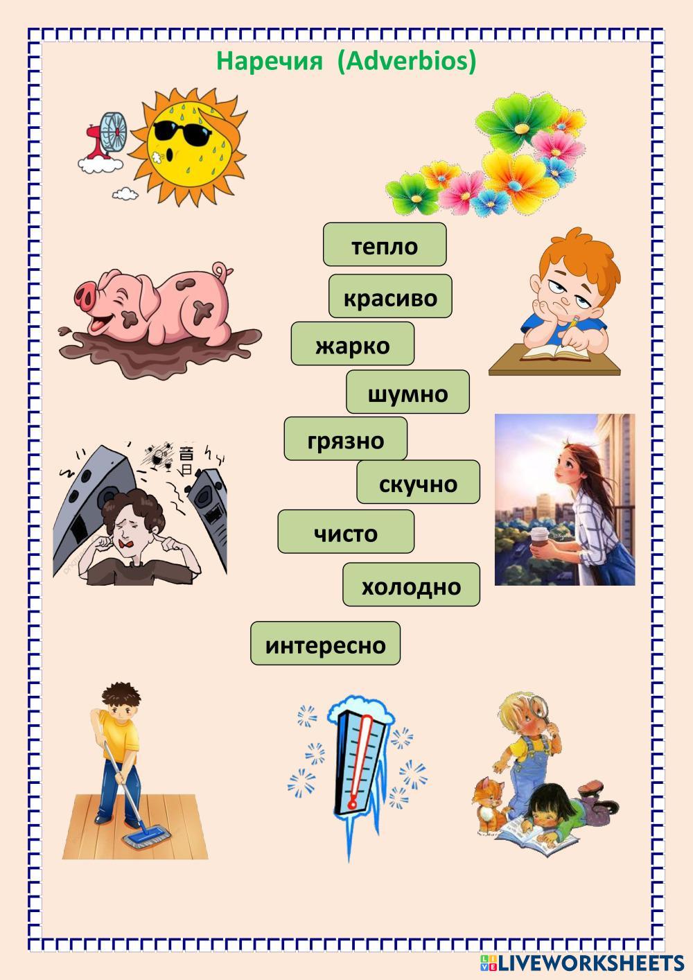 Лексика. Наречия Холодно, Жарко, Тепло, Шумно, Красиво, Скучно, Интересно