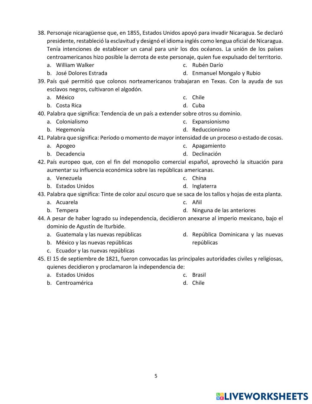 5to. Pre-Examen Sociales Repaso No. 1 - III Bimestre