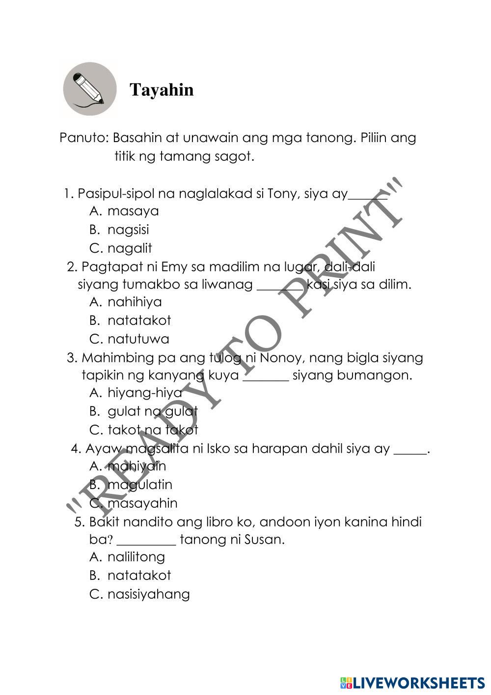 Pagpapahayag ng Sariling Damdamin o Reaksyon