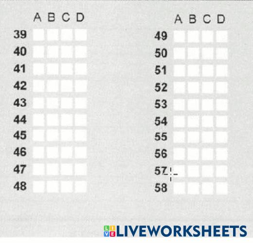 Created by Bilinska English as a Second Language (ESL) zno Age 16+ level: B2 Ukrainian คำแนะนำของผู้เขียน My Google Classroom Courses × 0 classes selected (0 students total) Quick Access Select all classes (0 classes) All Classes Loading courses... ยกเลิก Share Share to selected Course __COURSE_NAME__ __STUDENT_NAME__ (__STUDENT_EMAIL__) Use of English ดาวน์โหลด Worksheet Validation Check my answers Emails my answers to my teacher ชื่อเต็ม Group/level School subject Teacher's email or key code Close ส่งข้อมูล Validating worksheet... (12) Your answers have been sent to your teacher. Good luck! OK We encountered an error submitting your answers. Please try again. OK โฆษณา | ใช้งานแบบไม่มีโฆษณา Created by Bilinska English as a Second Language (ESL) zno Age 16+ level: B2 Ukrainian คำแนะนำของผู้เขียน