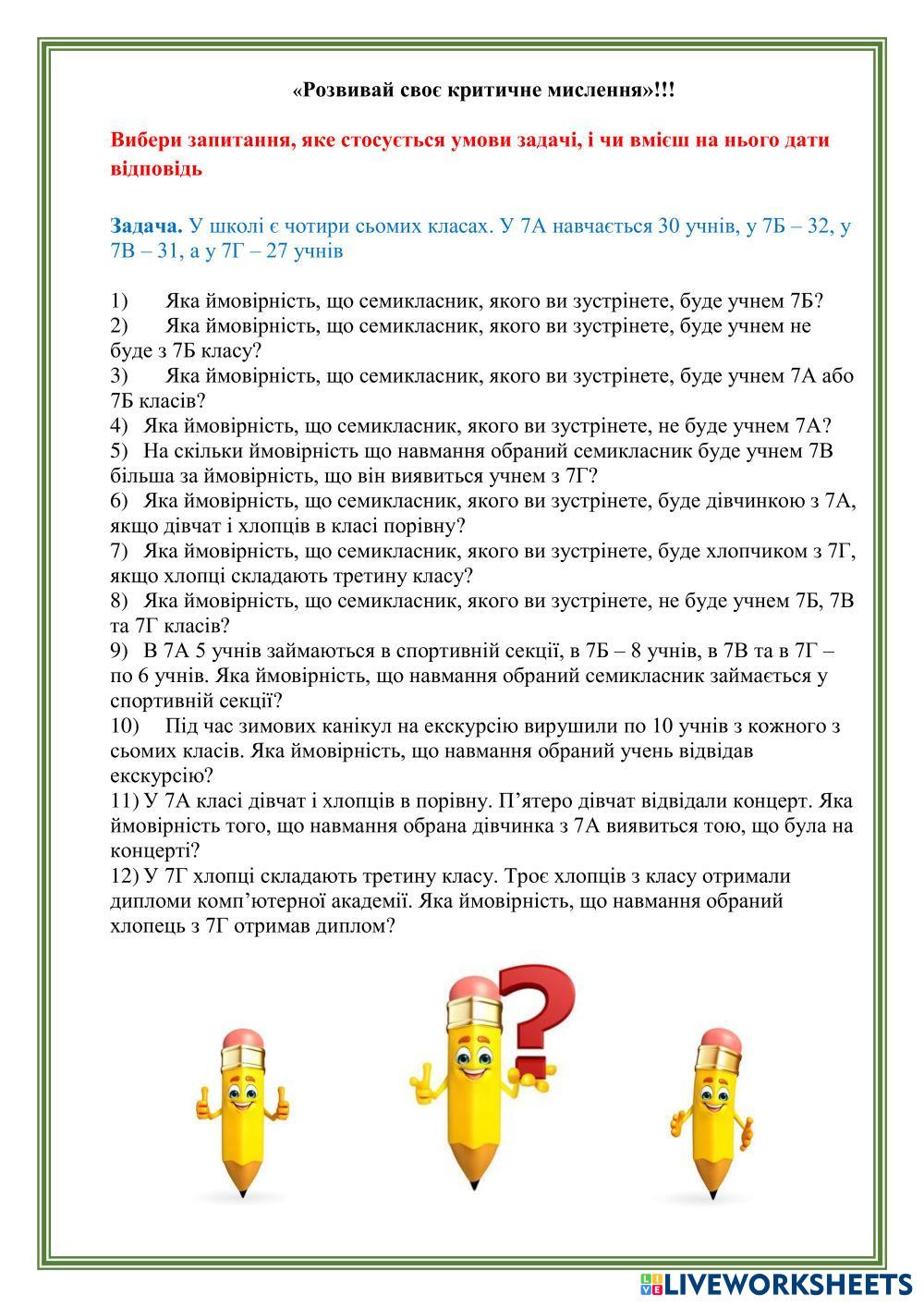 Робочий аркуш до підручника