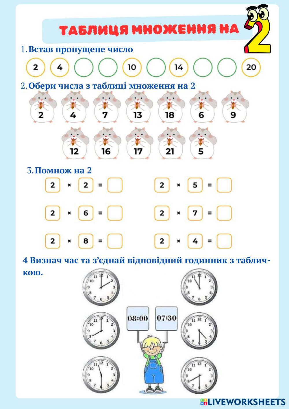 Таблиця множення на два