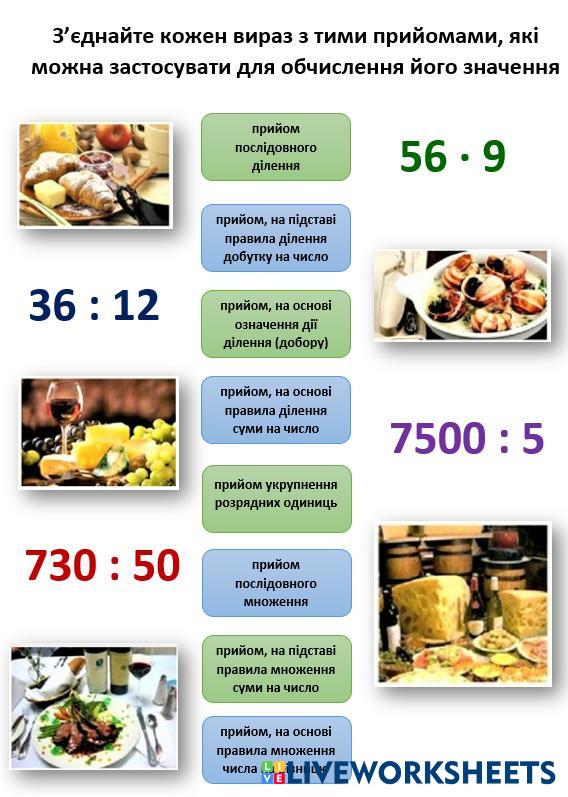 З’єднайте кожен вираз з тими прийомами, які можна застосувати для обчислення його значення