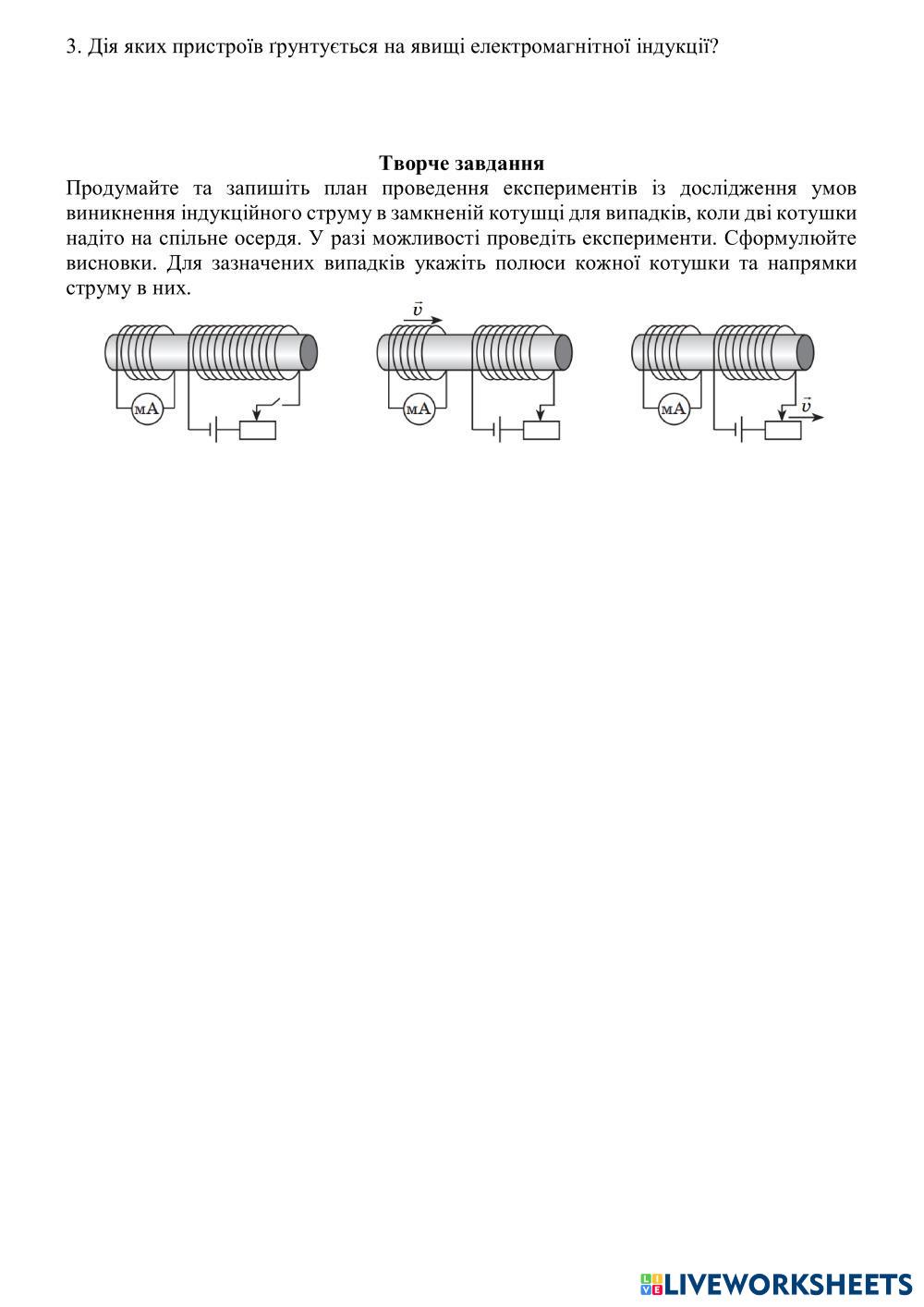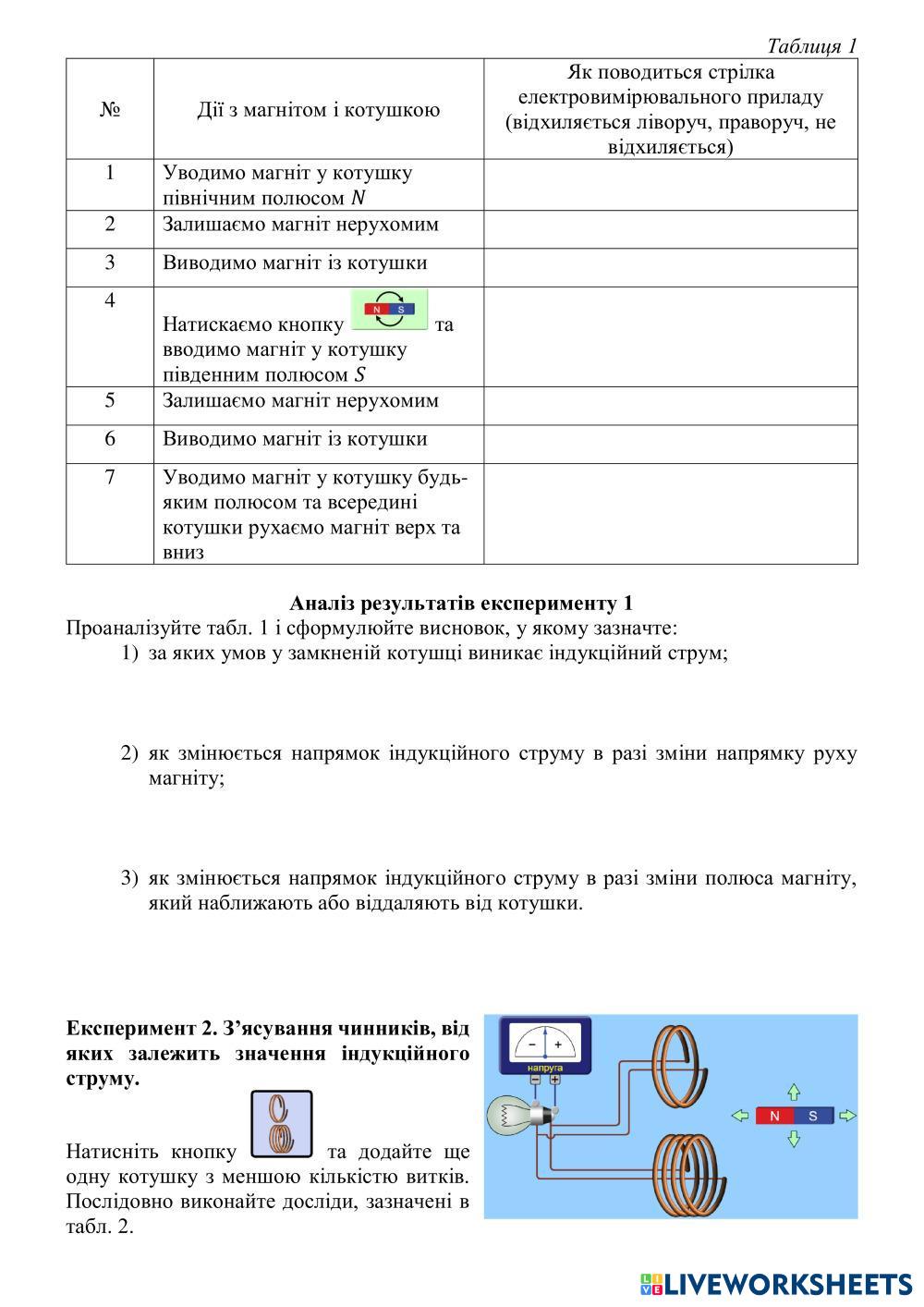 Дослідити умови виникнення індукційного струму в замкненій котушці; з'ясувати чинники, від яких залежать сила та напрямок індукційного струму