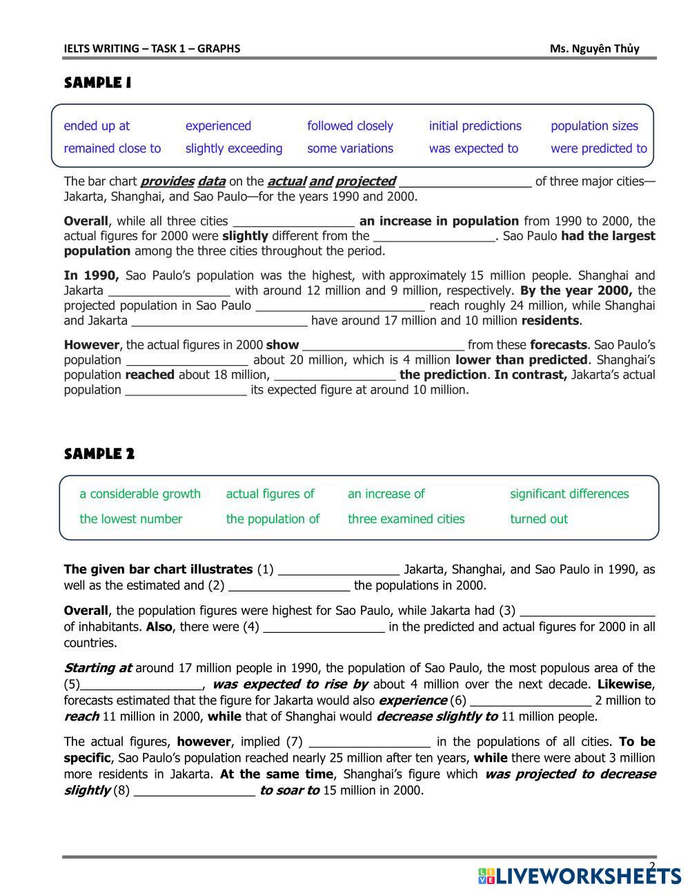 Created by dinhthuy1805 ESL Writing Age 12+ level: Intermediate Vietnamese คำแนะนำของผู้เขียน My Google Classroom Courses × 0 classes selected (0 students total) Quick Access Select all classes (0 classes) All Classes Loading courses... ยกเลิก Share Share to selected Course __COURSE_NAME__ __STUDENT_NAME__ (__STUDENT_EMAIL__) Task 1 - Bar graph - POPULATION ดาวน์โหลด Worksheet Validation Check my answers Emails my answers to my teacher ชื่อเต็ม Group/level School subject Teacher's email or key code Close ส่งข้อมูล Validating worksheet... (12) Your answers have been sent to your teacher. Good luck! OK We encountered an error submitting your answers. Please try again. OK โฆษณา | ใช้งานแบบไม่มีโฆษณา Created by dinhthuy1805 ESL Writing Age 12+ level: Intermediate Vietnamese คำแนะนำของผู้เขียน