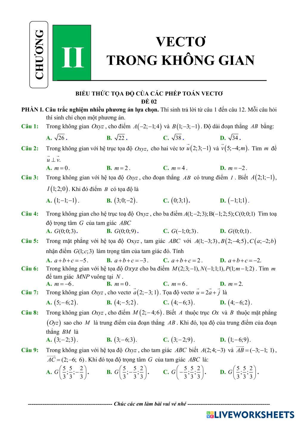 HỆ TỌA ĐỘ TRONG KHÔNG GIAN 2